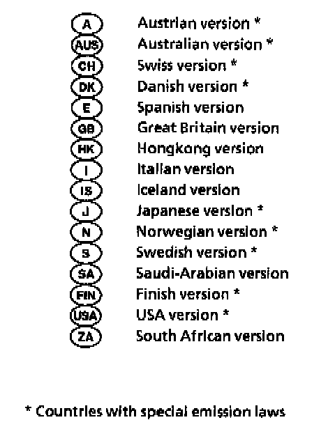 The applicable model year is specified following the nationality symbol for the national versions when necessary for differentiation.