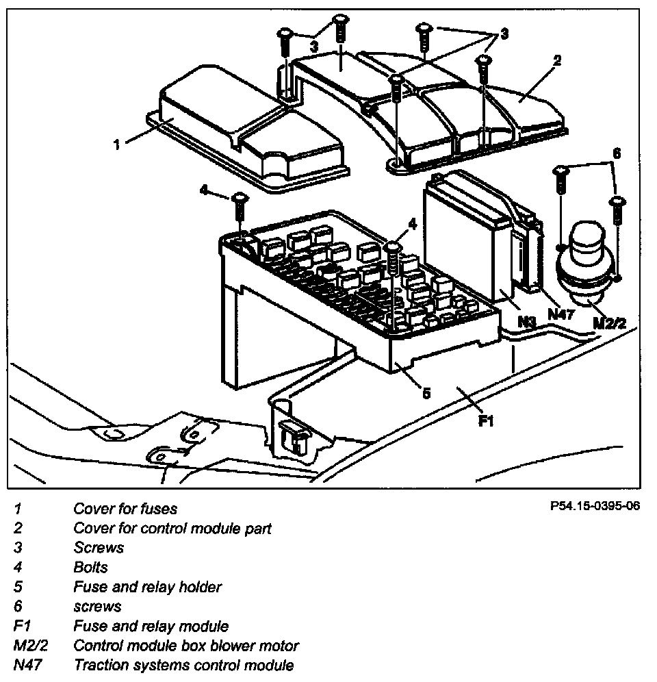 5 Unscrew screws (4) and remove fuse and relay holder (5) upwards