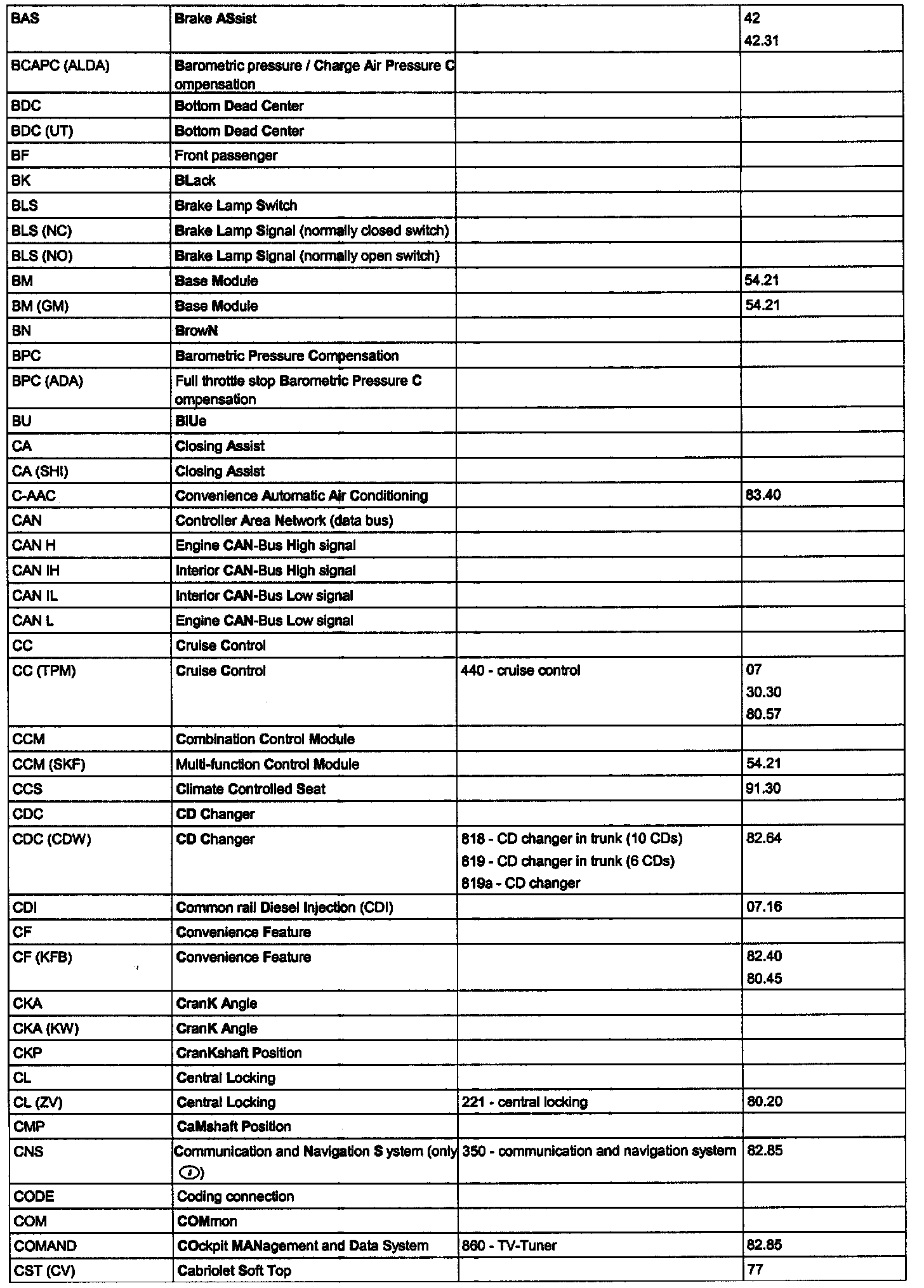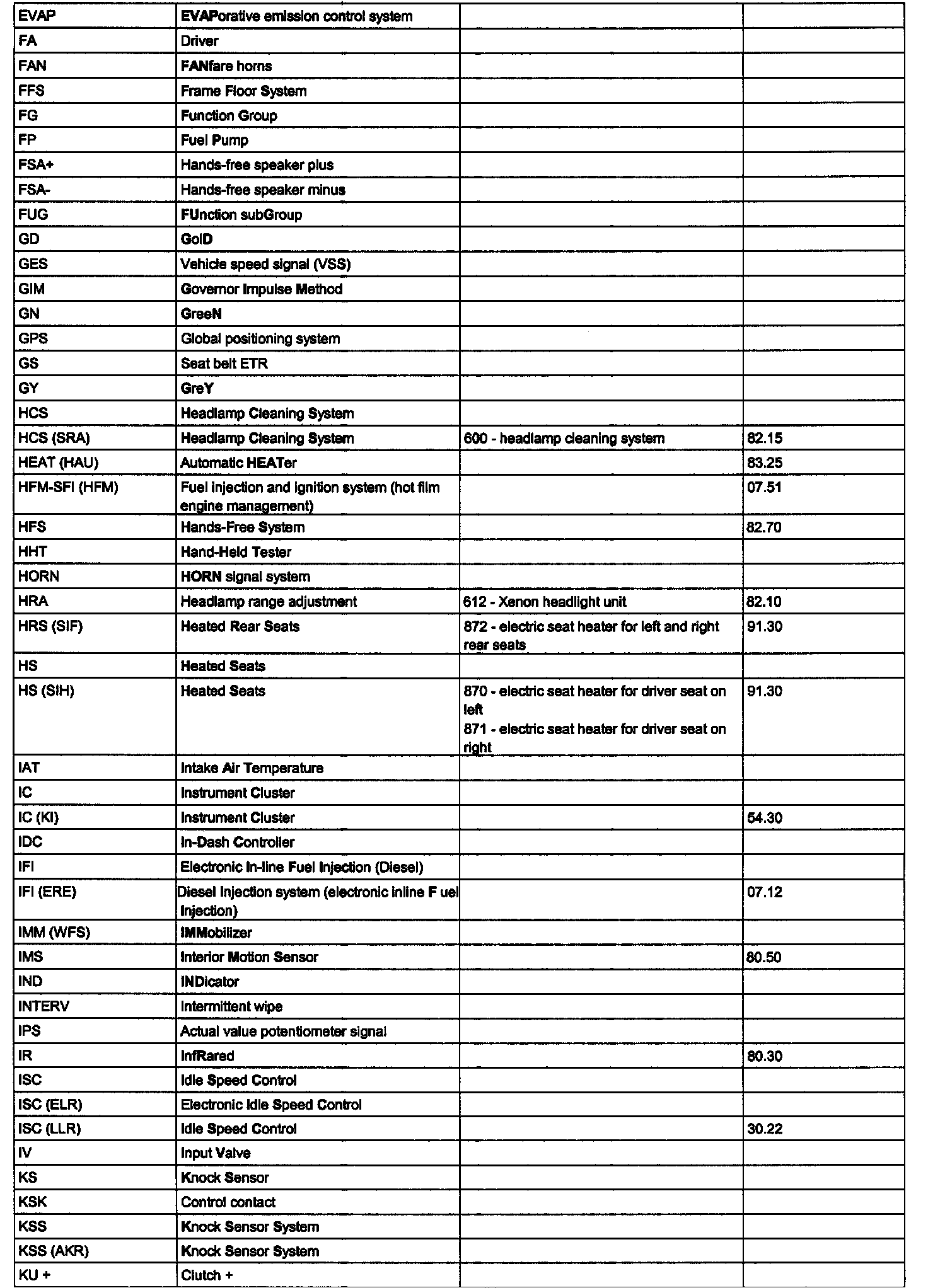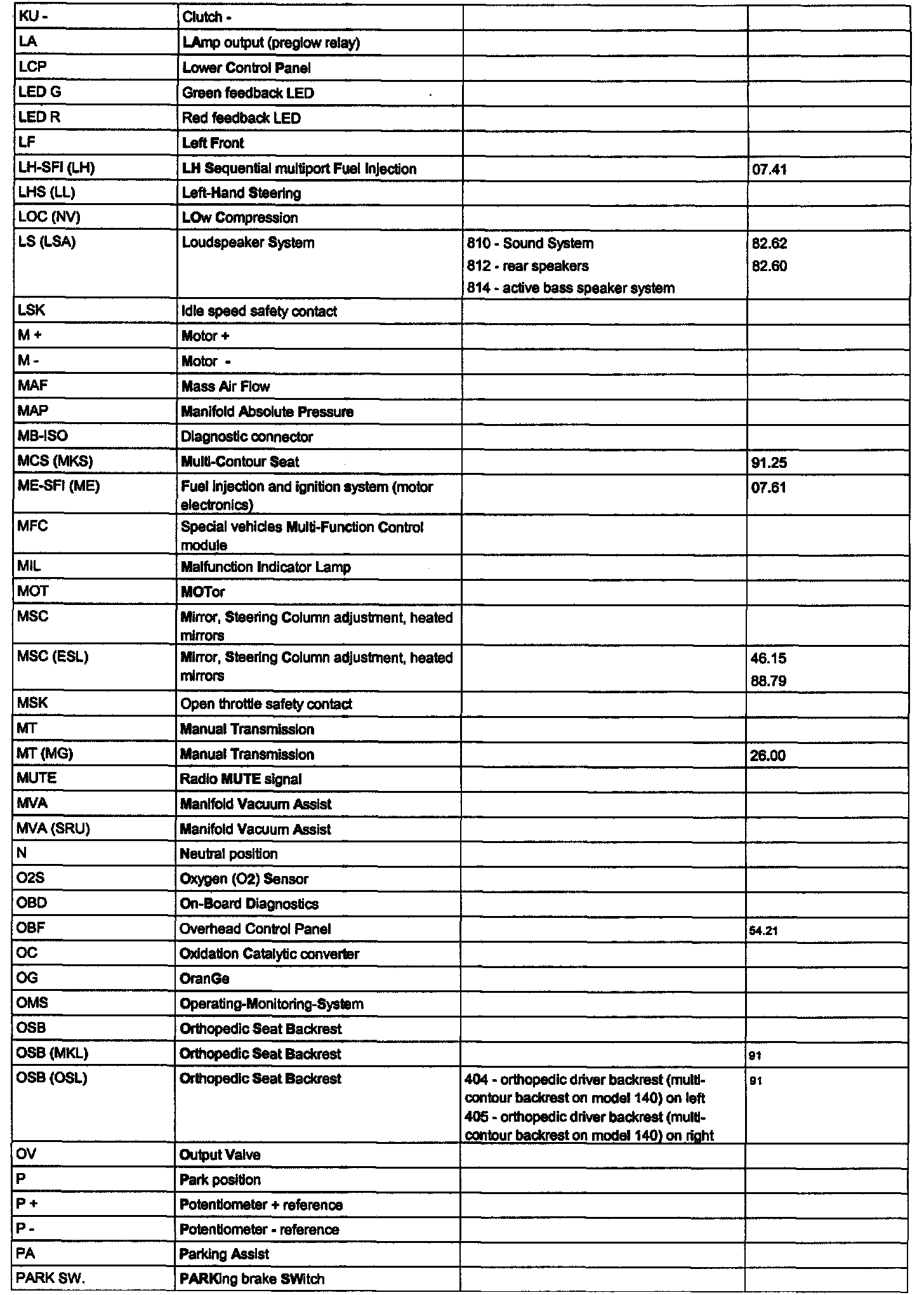 OV00.01-U-1001-27A - Abbreviations and Option Codes