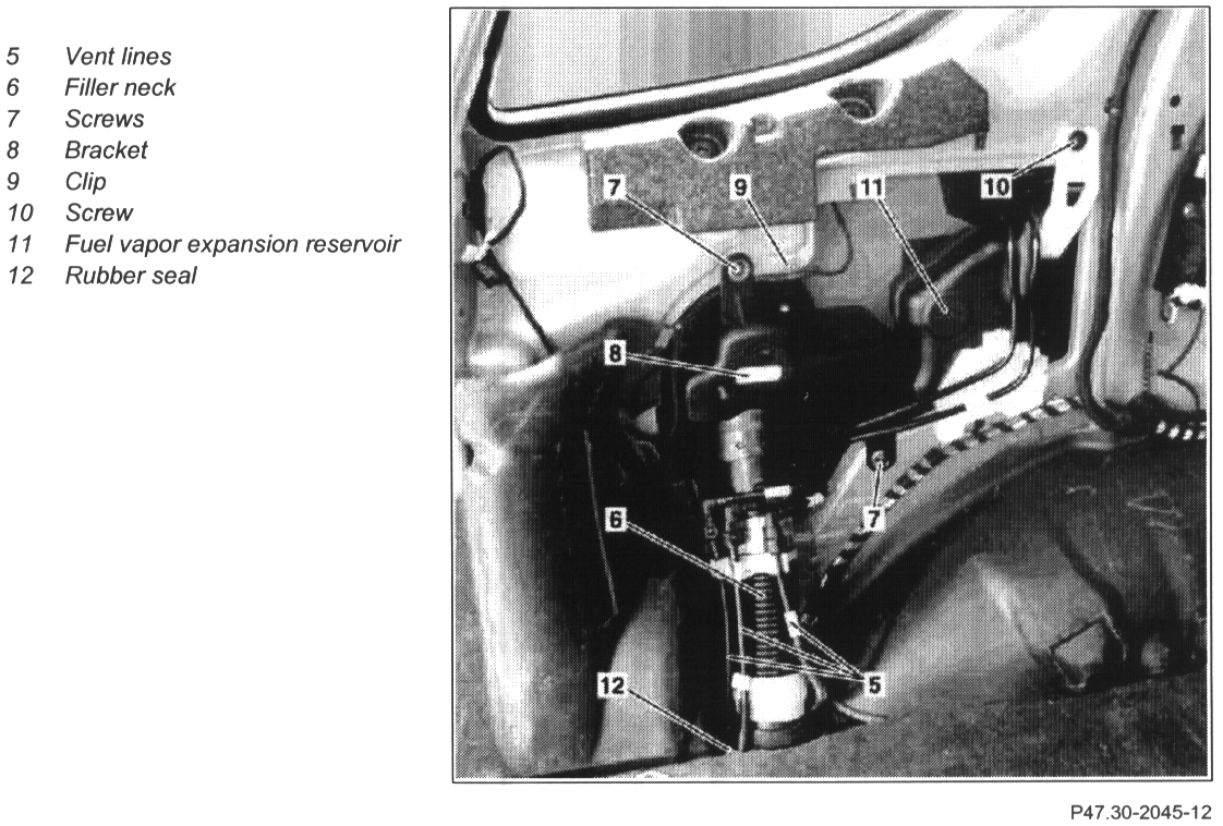 12 Take fuel vapor expansion reservoir (11) out of C-pillar