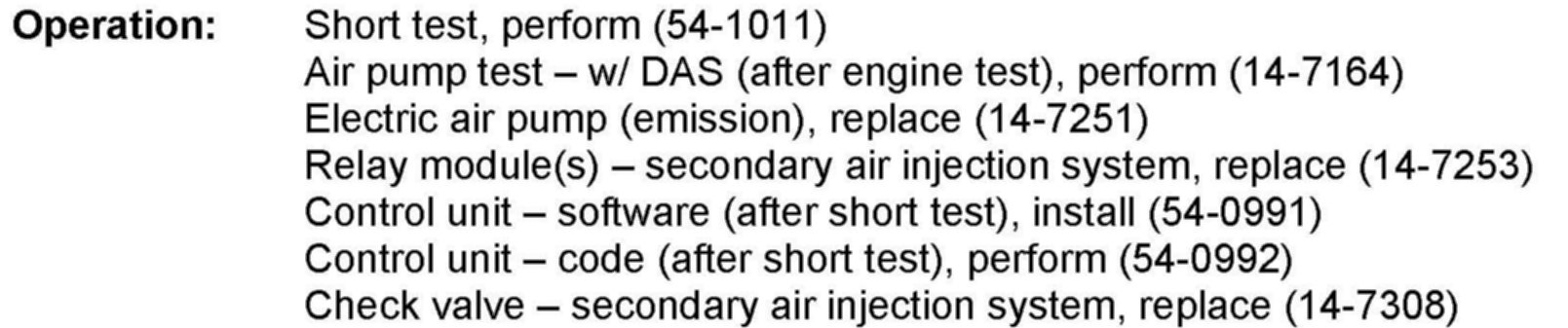 1.2 If the secondary air pump is determined to be defective remove/replace secondary air pump and air pump relay (refer to WIS document: AR14.30-P-7251QB).