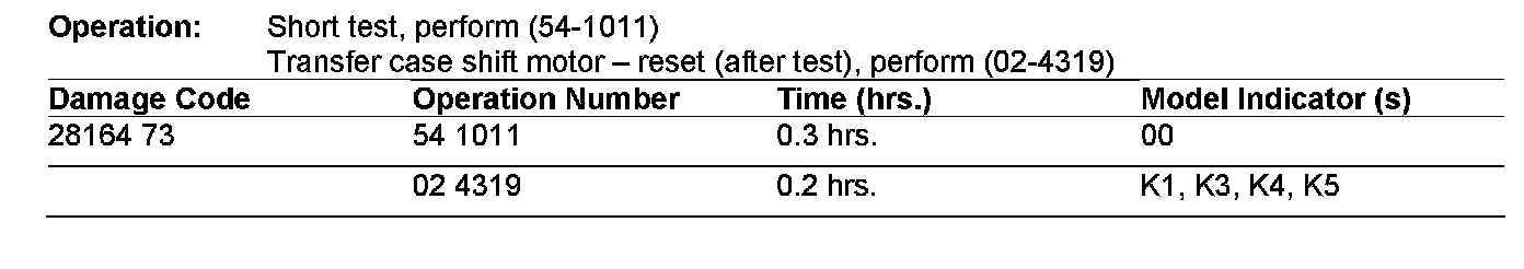 If you receive customer reports in the above model vehicles of the low Range light flashing rapidly (18 times) after vehicle start with fault code P1831 (Positioner motor, position sensor or power supply is faulty) in transfer case ECU, do not replace the transfer case motor. This is caused by temporary loss of communication between transfer case control module and shift motor position sensor. To resolve, read out fault codes and cycle transfer case shift motor by following the below procedure.