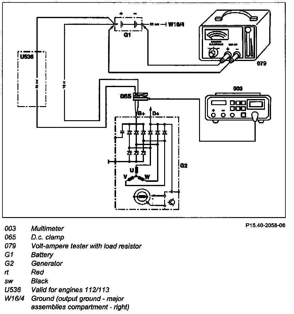 NOTE: Connect the battery (G1) to the volt/ampere tester with integrated load resistor (079).
