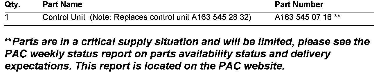To resolve, remove the old FBM control unit as per WIS instruction AR54.21-P-1300GH and replace FBM control unit with part number listed in the parts information section below.