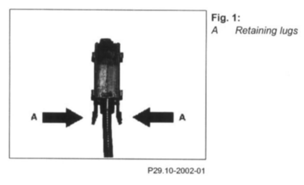 NOTE: Press together retaining lugs and pull cable out of bracket (Figure 2, B).