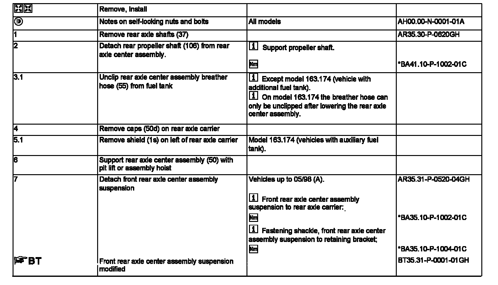 AR35.31-P-0520GH Remove/Install Rear Axle Center Assembly