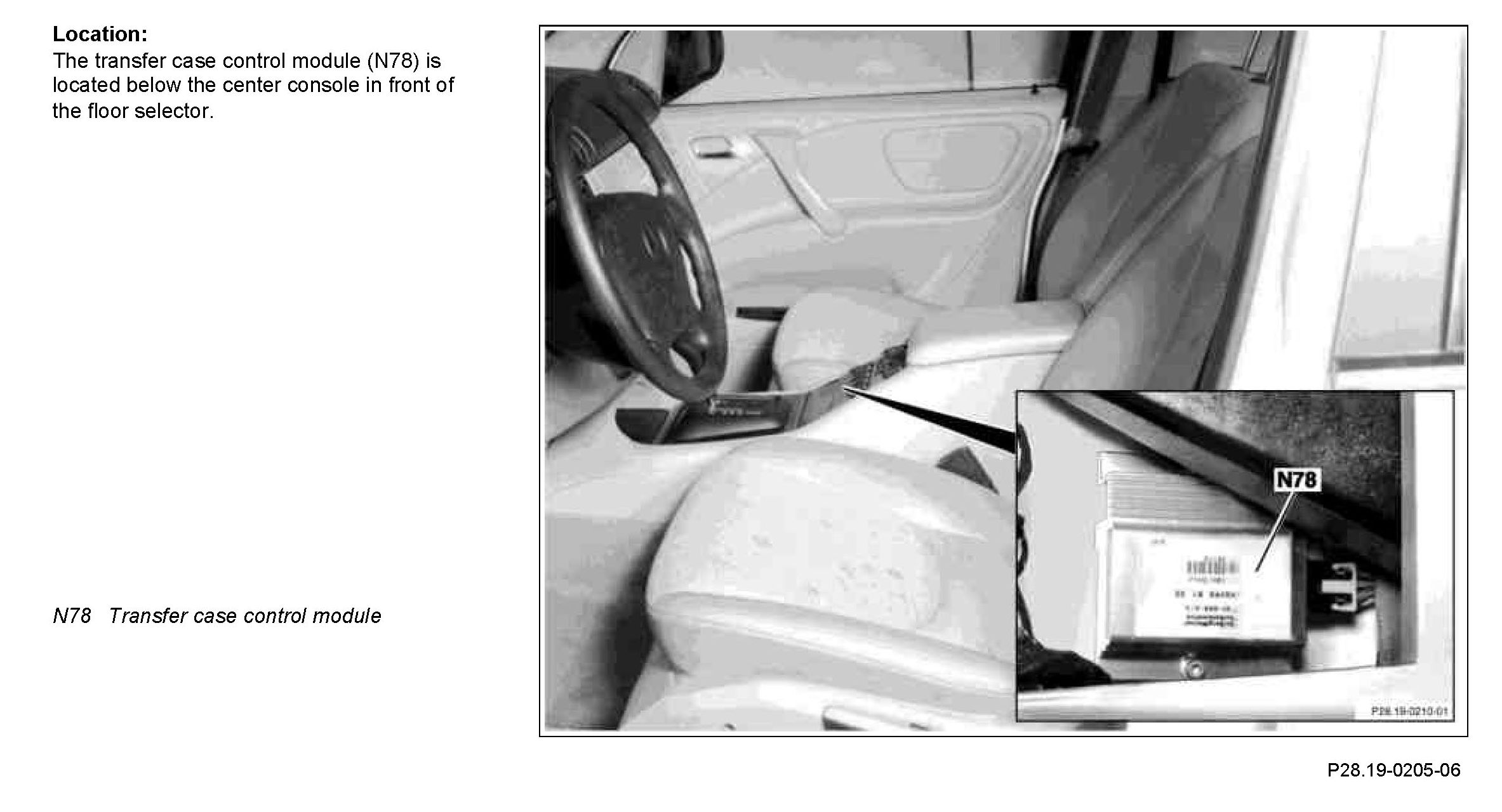 GF28.19-P-3100-01A Location of transfer case control module Model 163