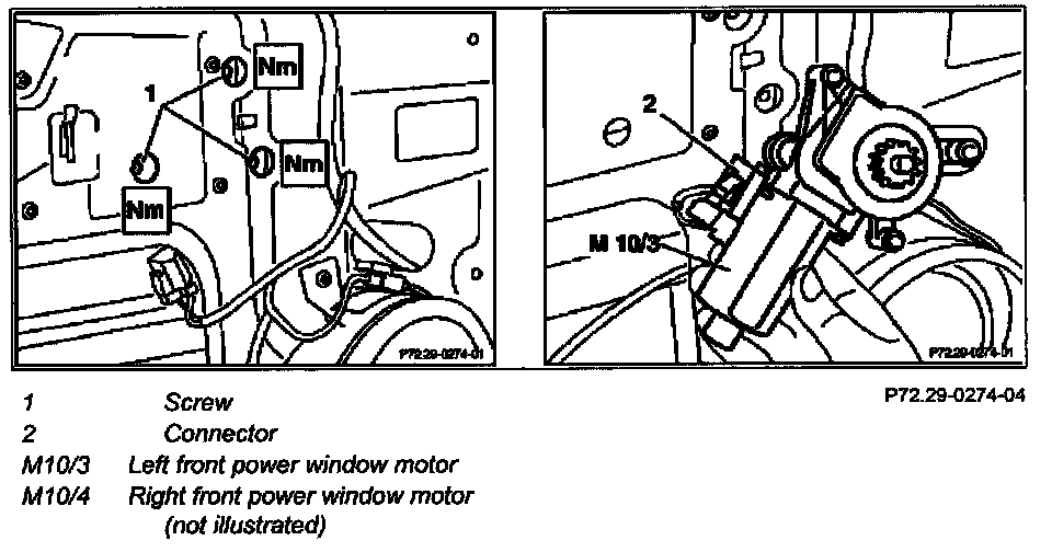 5 Remove power window motor (M 10/3 or M10/4) from door