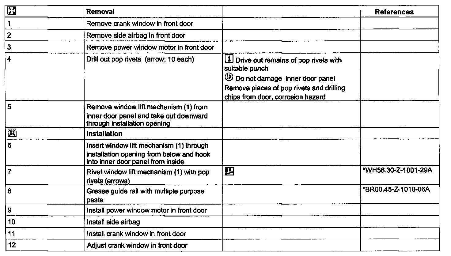 Removing and installing window lift mechanism in front door