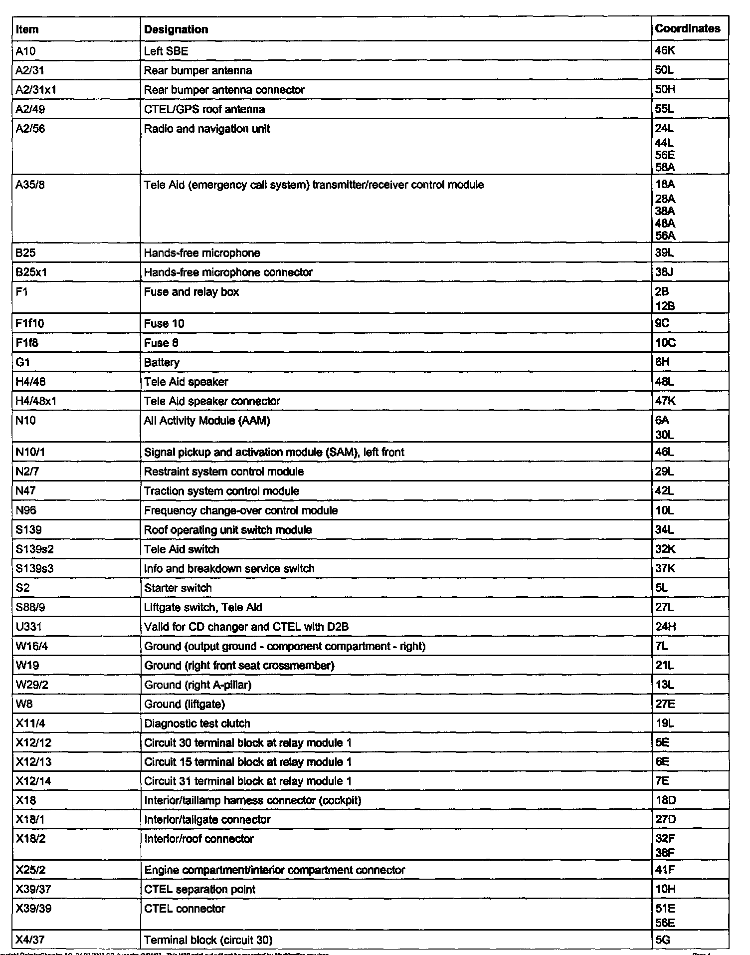 Legend For EMERGENCY CALL System: