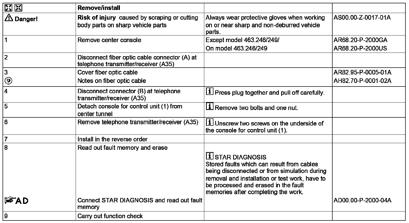 AR82.70-P-7000GR Remove/install Telecommunications Control Unit