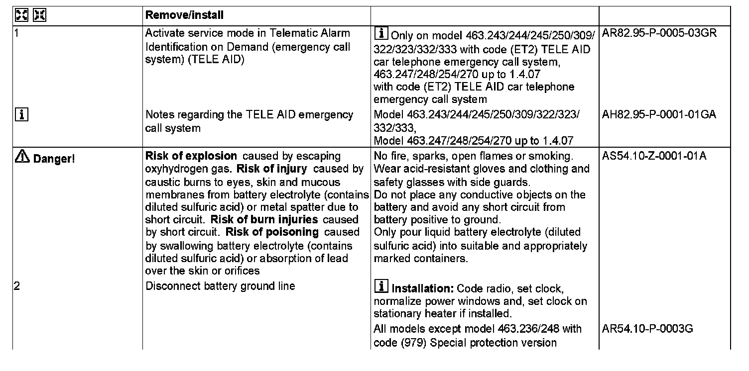 MODEL 463.222 /243 /244 /245 /246 /247 /248 /249 /250 /254 /270 /271 /303 /306 /309 /322 /323 /332 /333 /336 /340 /341