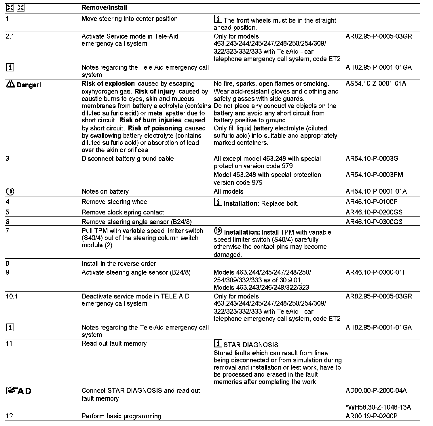 MODEL 463.244 /245 /247 /248 /249 /250 /254 /309 /322 /323 /332 /333 as of 1.7.02 up to 31.5.04, 463.243 /246 up to 31.5.04