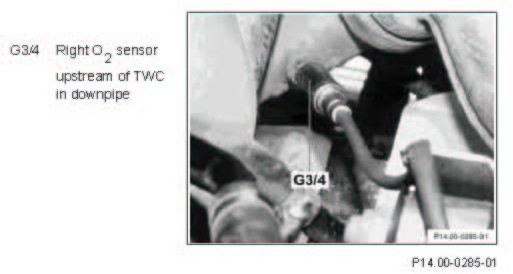 G3/4 Right O2 sensor upstream of Three Way Catalytic Converter