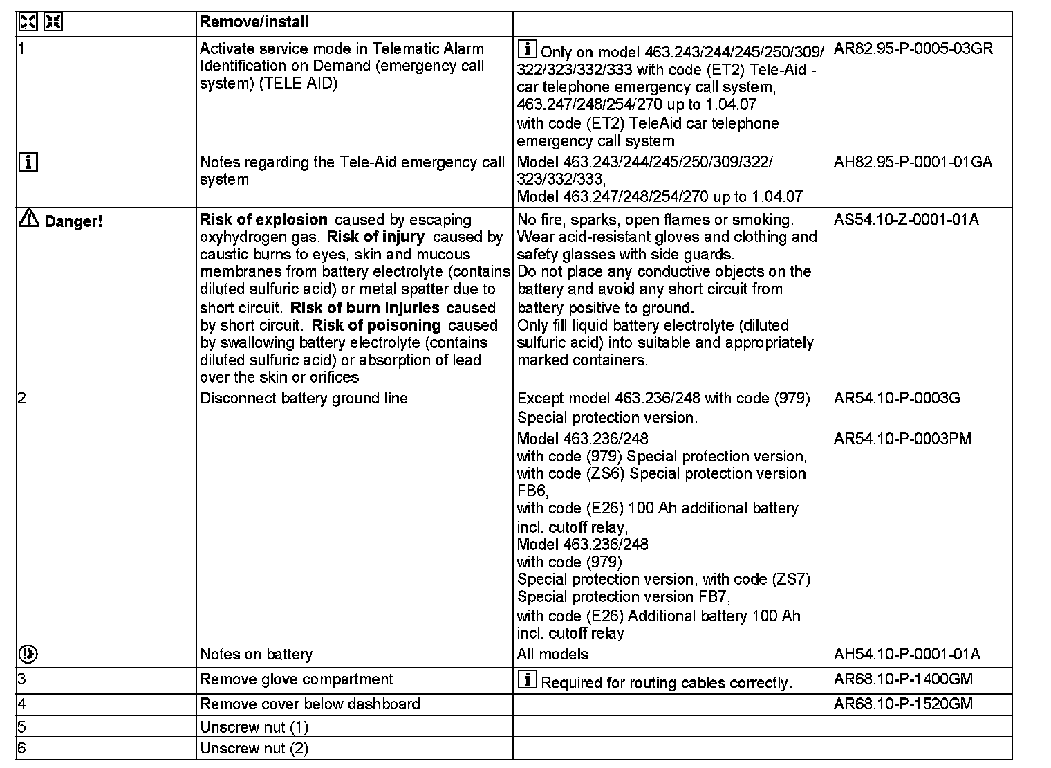 MODEL 463.202 /222 /236 /237 /243 /244 /245 /246 /247 /248 /249 /250 /254 /270 /271 /303 /306 /309 /322 /323 /332 /333 /336 /340 /341 /346