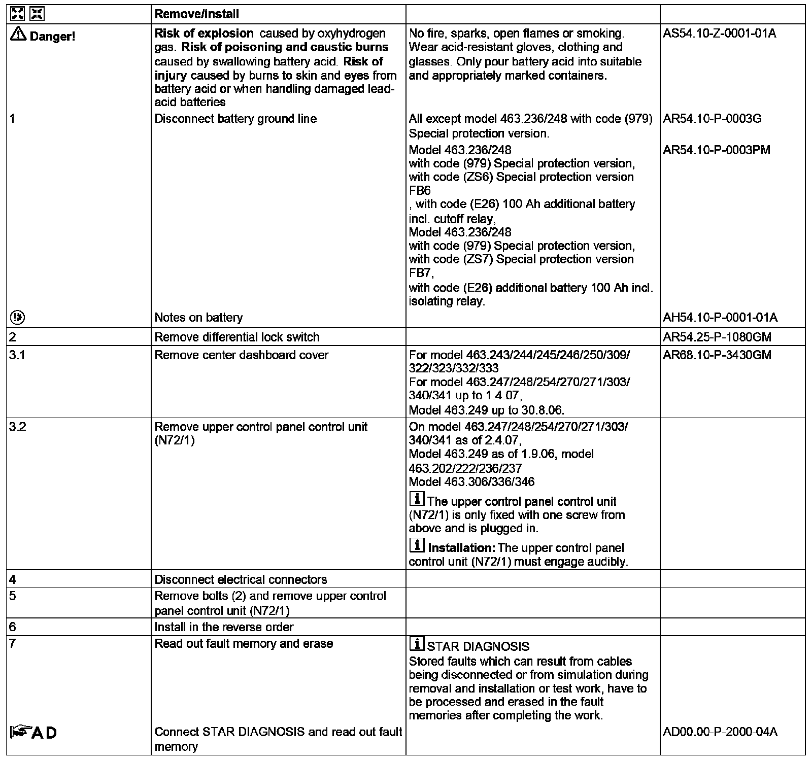 AR54.21-P-1262GM Remove/install Upper Control Panel Control Unit
