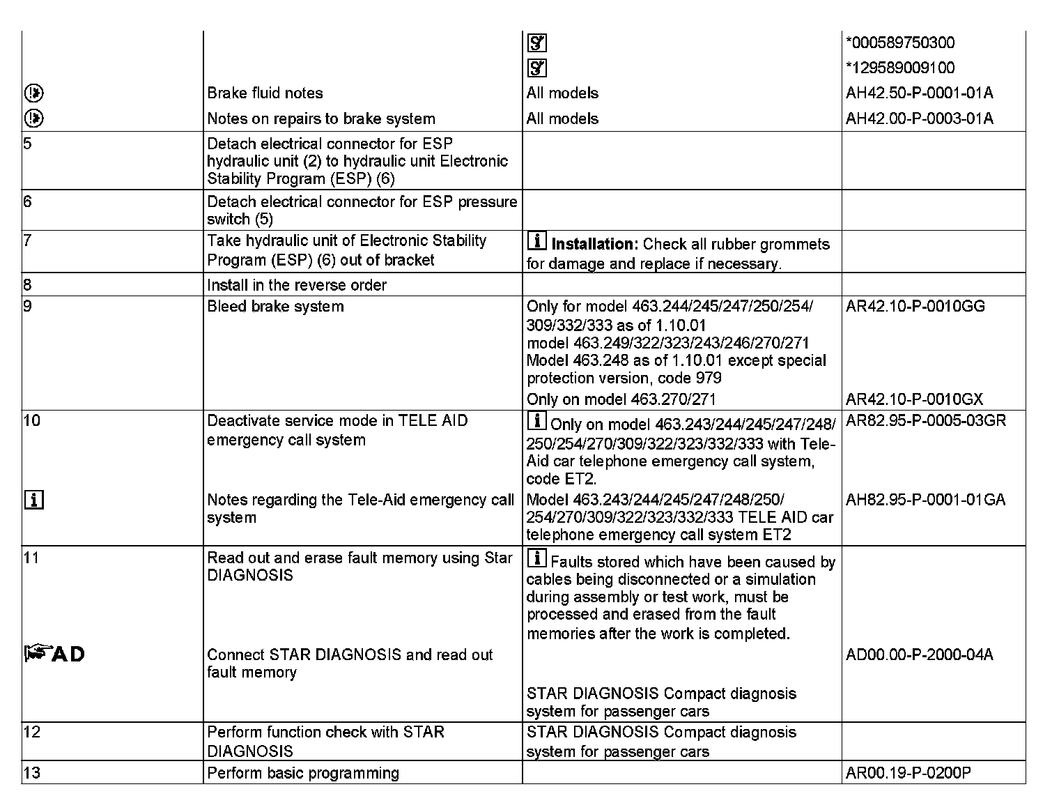 MODEL 463.244 /245 /247 /250 /254 /309 /332 /333 as of 1.10.01, 463.249 /322 /323 /243 /246 /270 /271