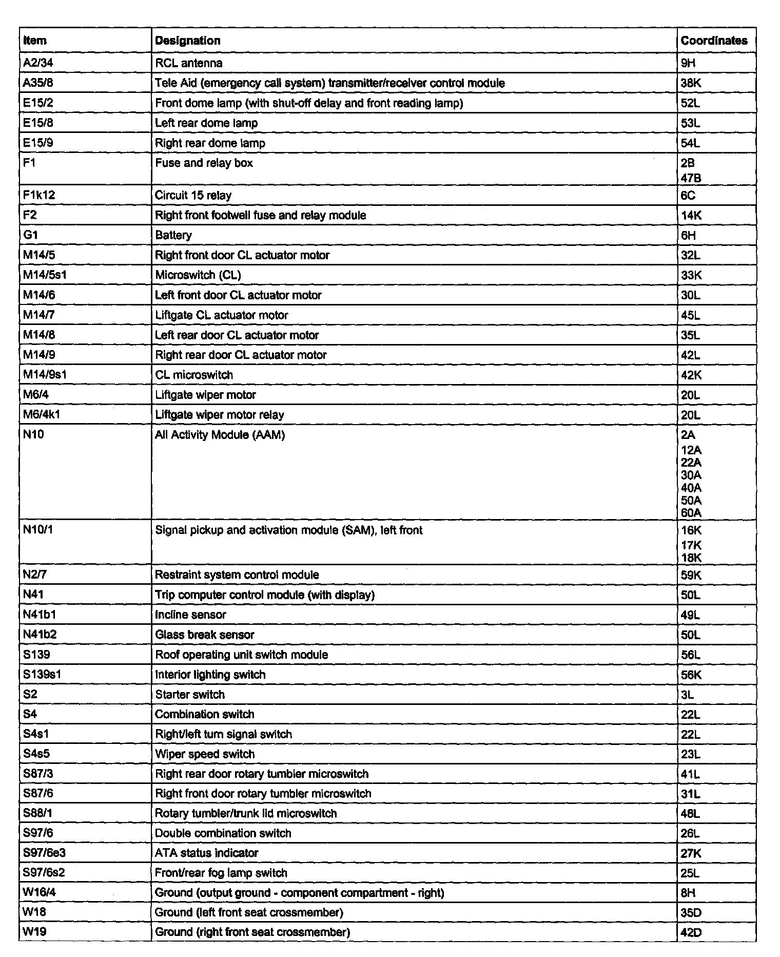 Legend For All-Activity Module (AAM):