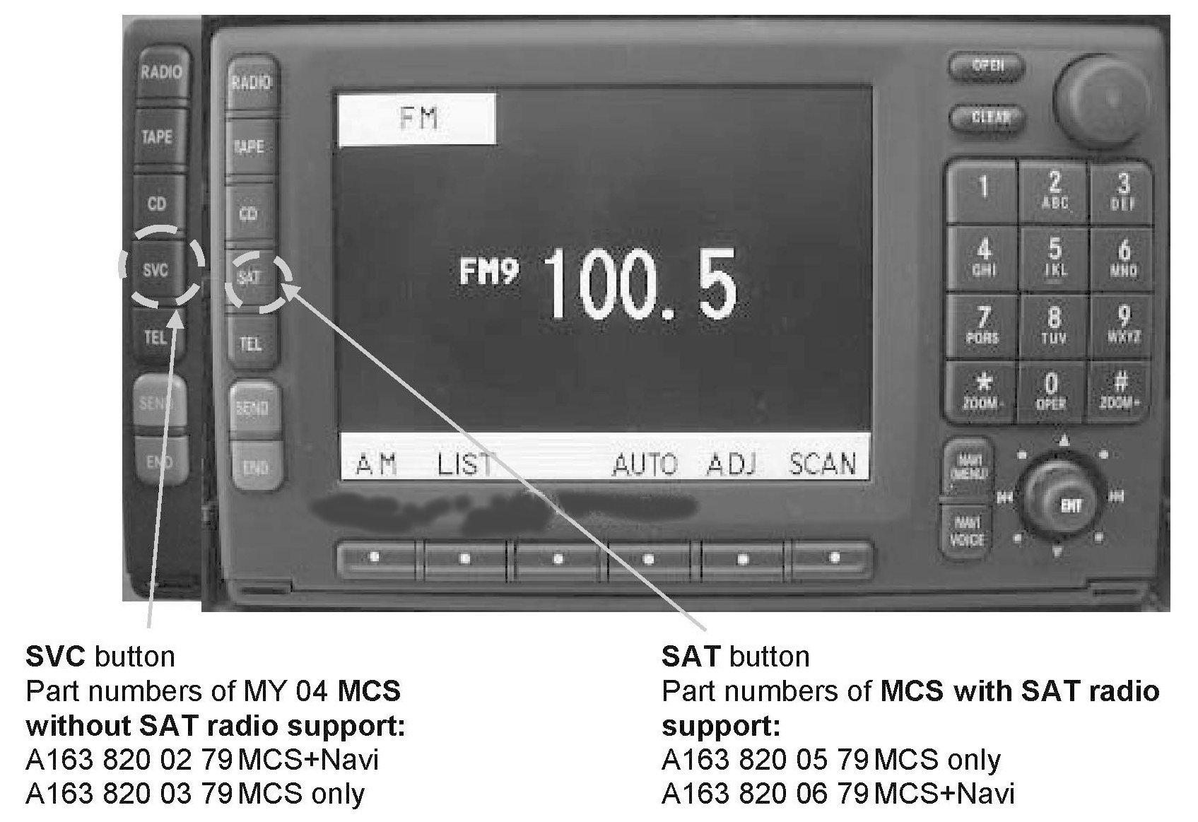 For Information Only! Please note in the above model vehicle range that the MCS head unit supplied with the vehicle may not support satellite radio. Radio head units which support satellite radio are equipped with the SAT button (Figure 1). Exchange of the MCS head unit due to lack of the satellite radio support is not covered by warranty. Any upgrade requiring the head unit with SAT support prior to the above VIN range is at customer expense. Any warranty claim for upgrading to SAT radio prior to the above VIN range will be debited back and the corresponding part will be returned to the dealer.