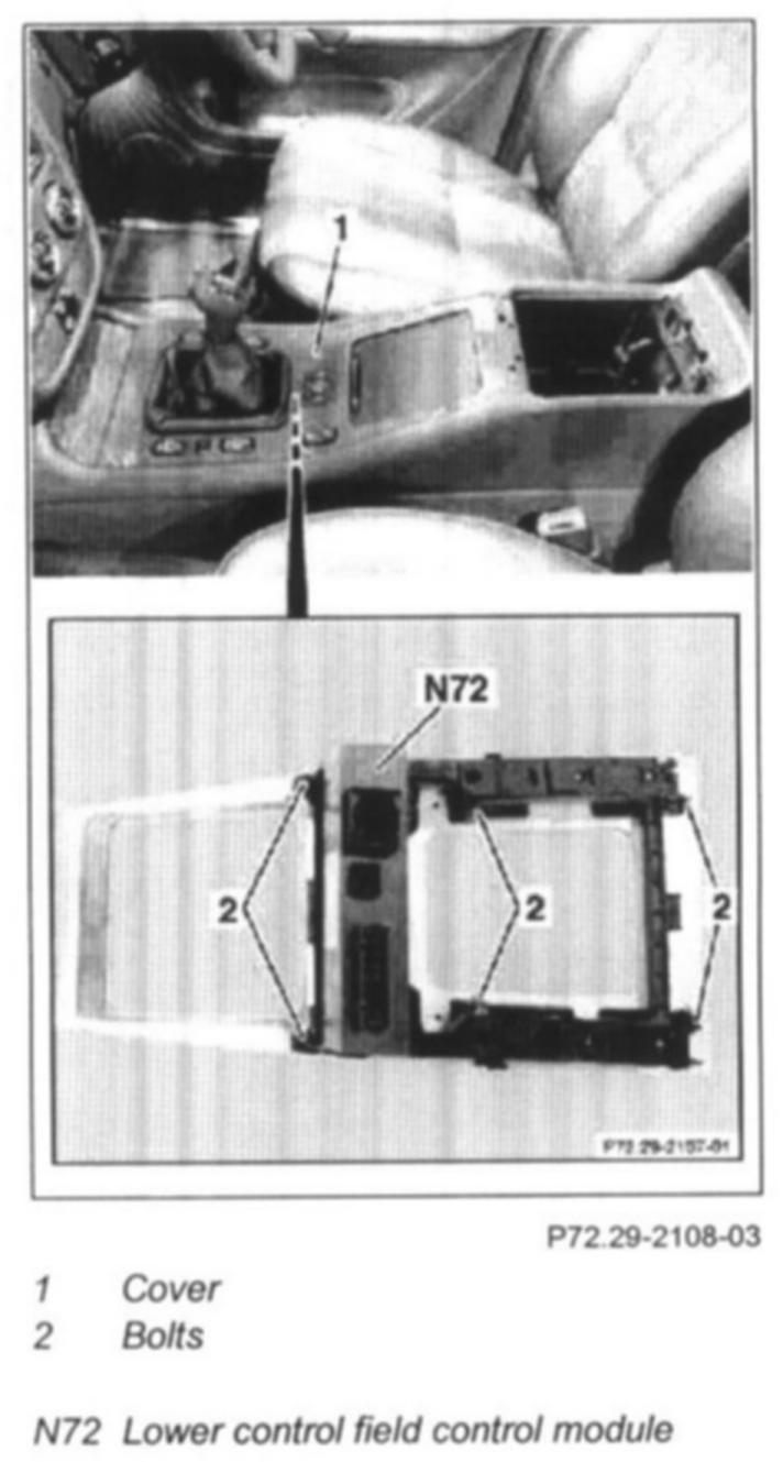 3 Detach lower control panel control module (N72) from the cover