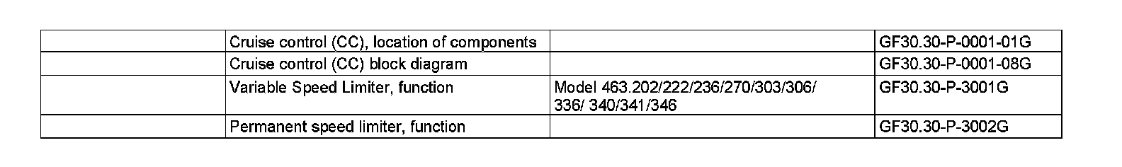 ^ Variable speed limiter, function (on model 463.202/222/236/270/303/340/341/306/336/346)