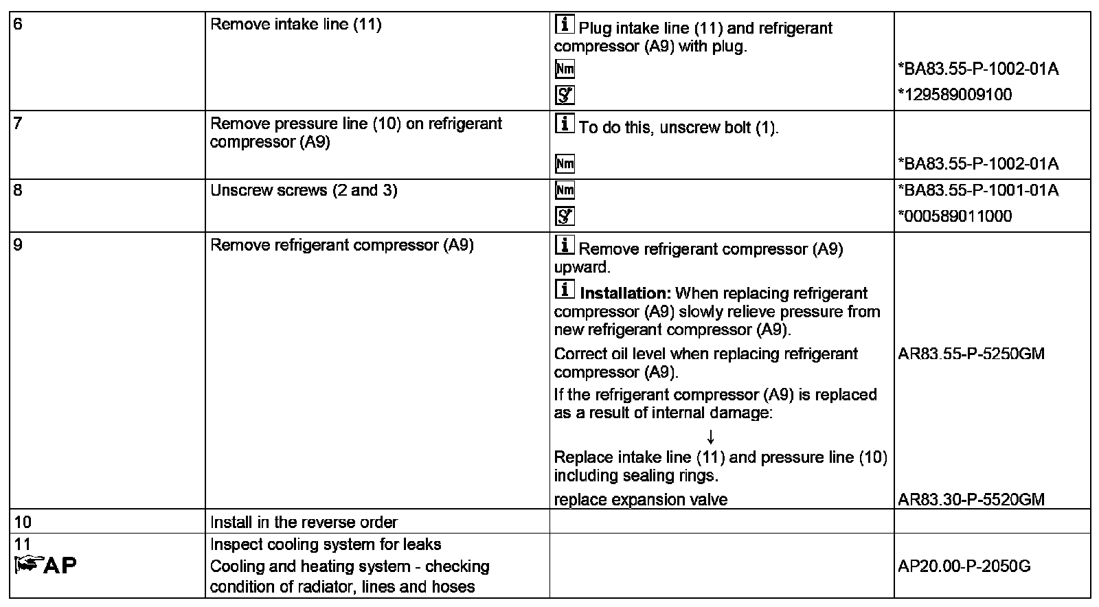 AR83.55-P-5300GX Remove/install Refrigerant Compressor