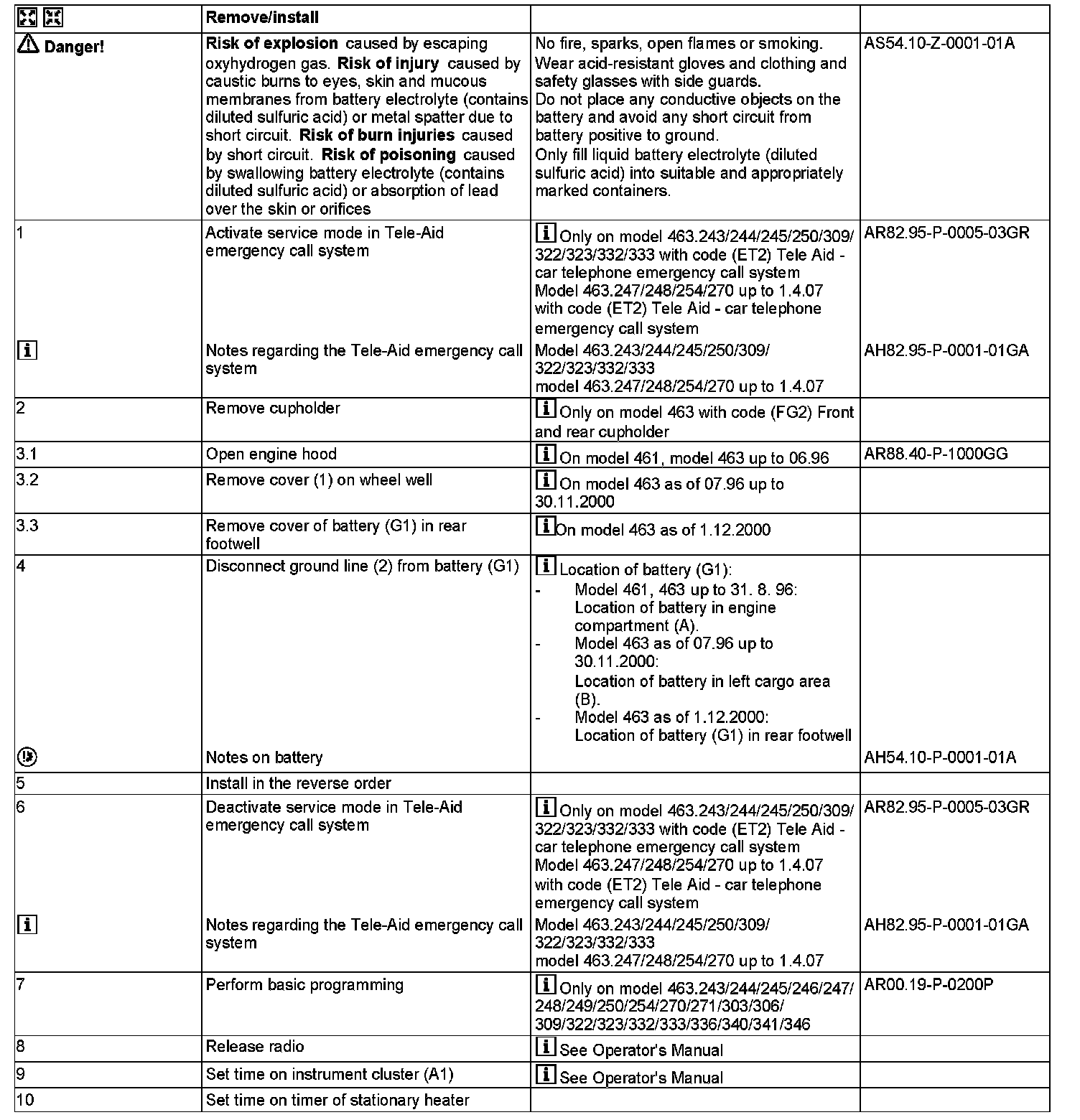 Shown on model 460, 461 except 461.302/332/342/345, model 463 up to December 2000