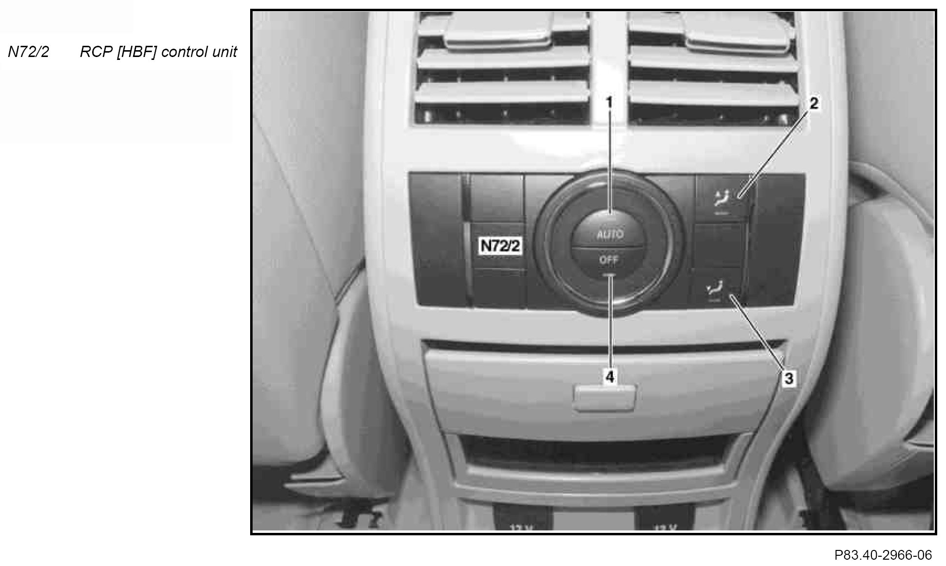 The RCP control unit is located in the extension of the center console for the 2nd seat row.