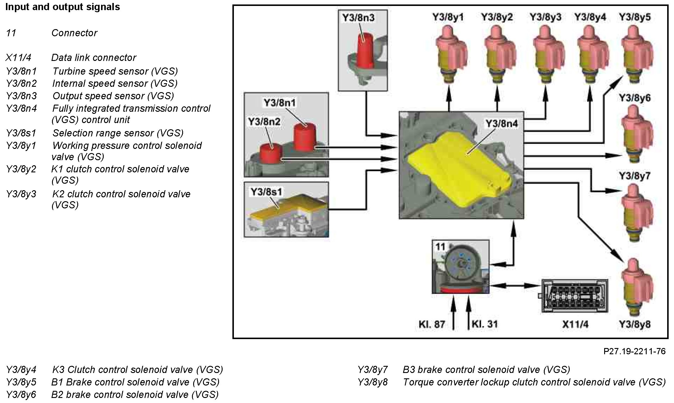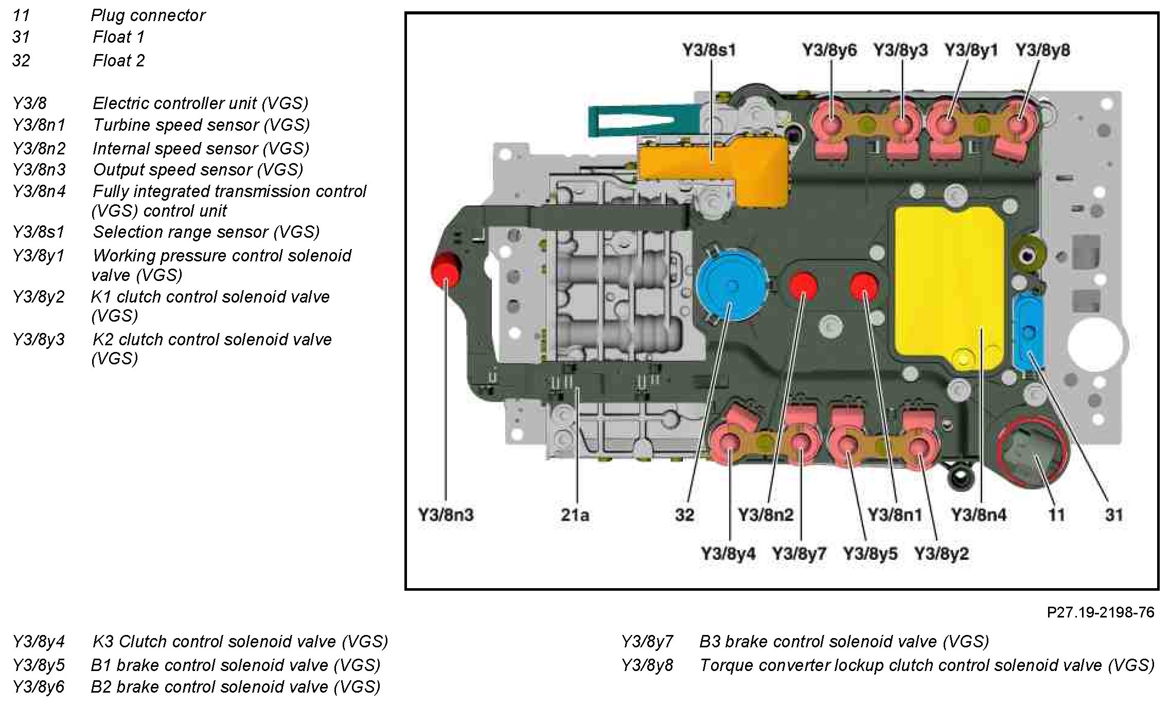 - Transmission oil temperature sensor (VGS) (Y3/8s2), which is integrated into the fully integrated transmission control (VGS) control unit