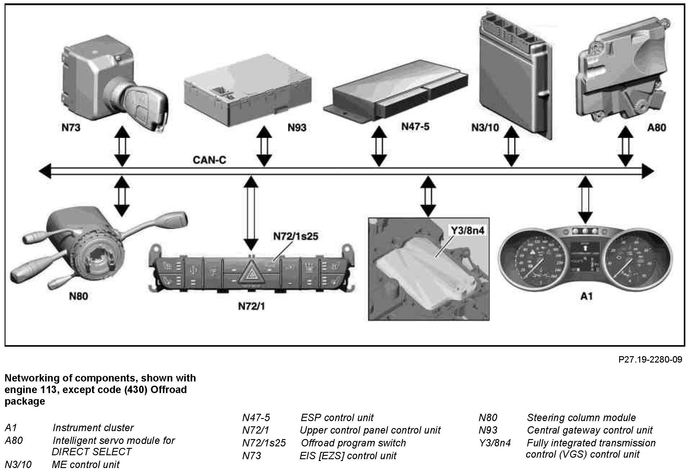 In addition via the Controller Area Network bus class C (engine compartment) (CAN-C) there is a connection to the: