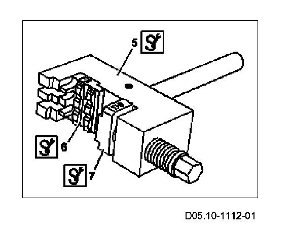 Ensure that the rivet element (7.1) and the rivet press tool (5) are aligned. Do not allow the centering fork (3) which is pressed out to drop into the timing case recess.