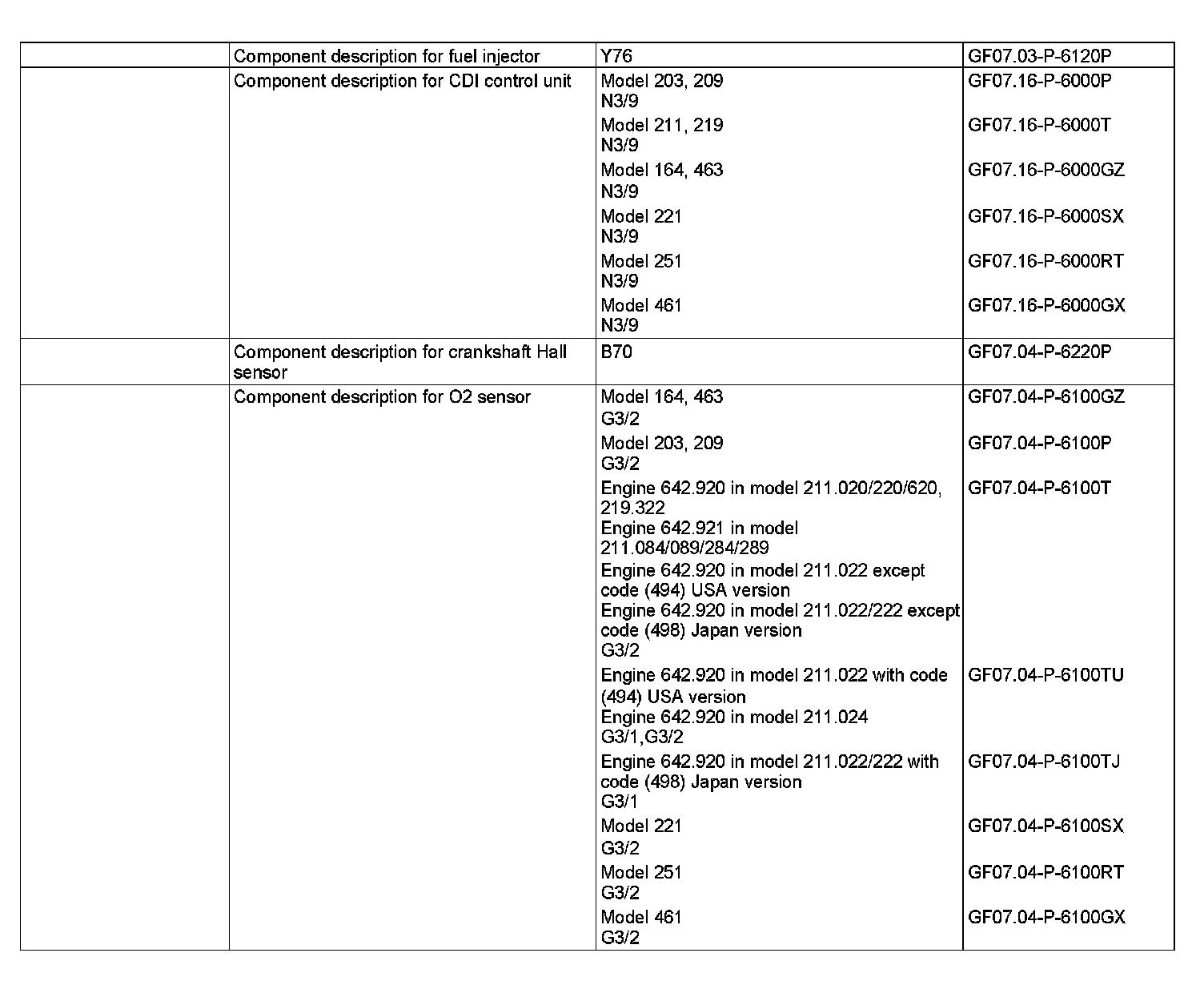 ENGINE 642 in MODEL 221.0, 203.0, 164.1, 203.2, 251.0 /1, 164.8, 221.1 up to model year 2008