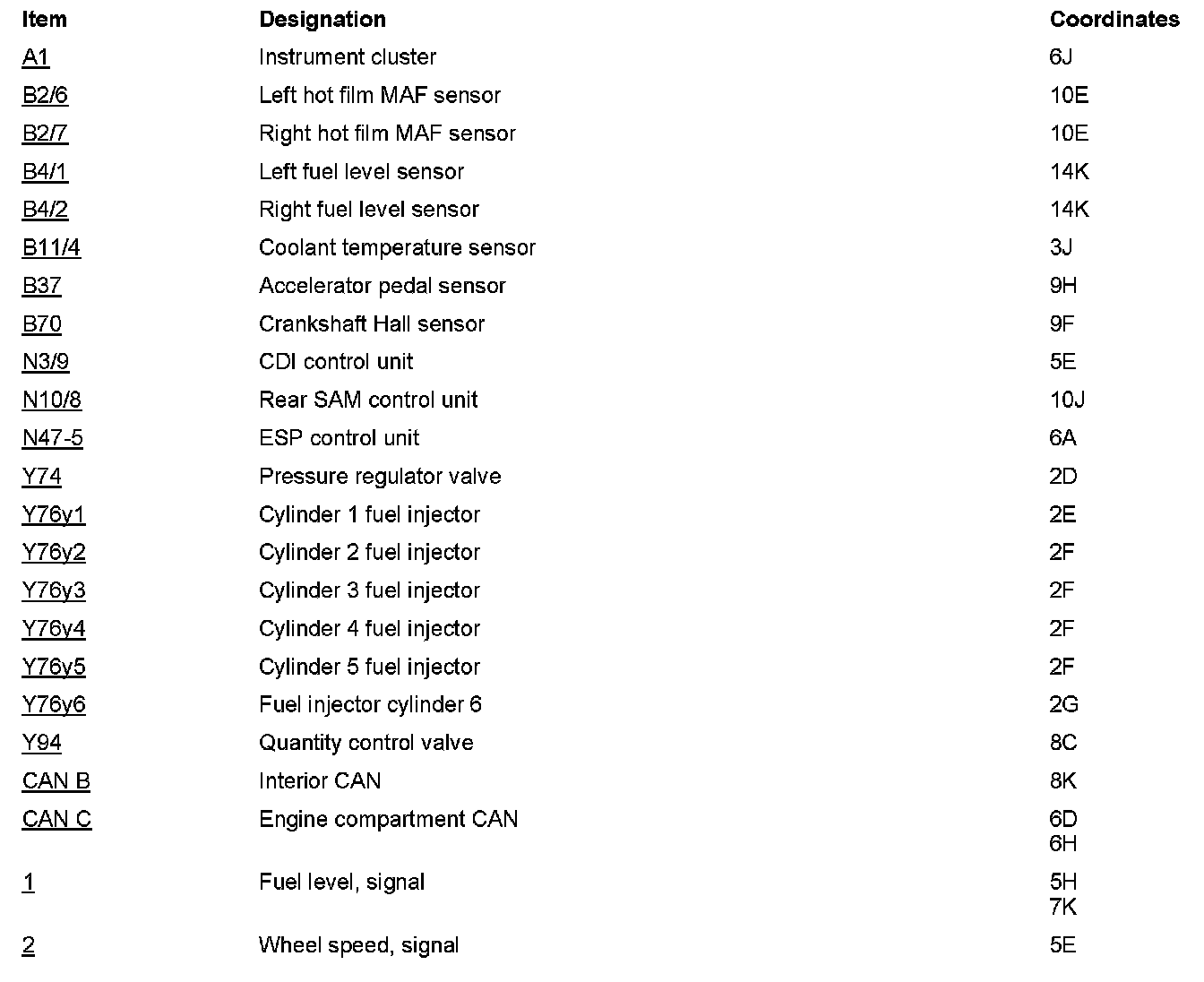 Component Locations: Component Location photographs can be found via their component names at the vehicle level. Component Locations