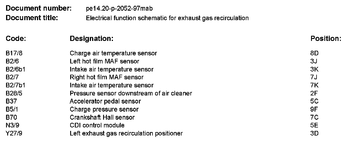Electrical Function Schematic for Exhaust Gas Recirculation PE14.20-P-2052MAB