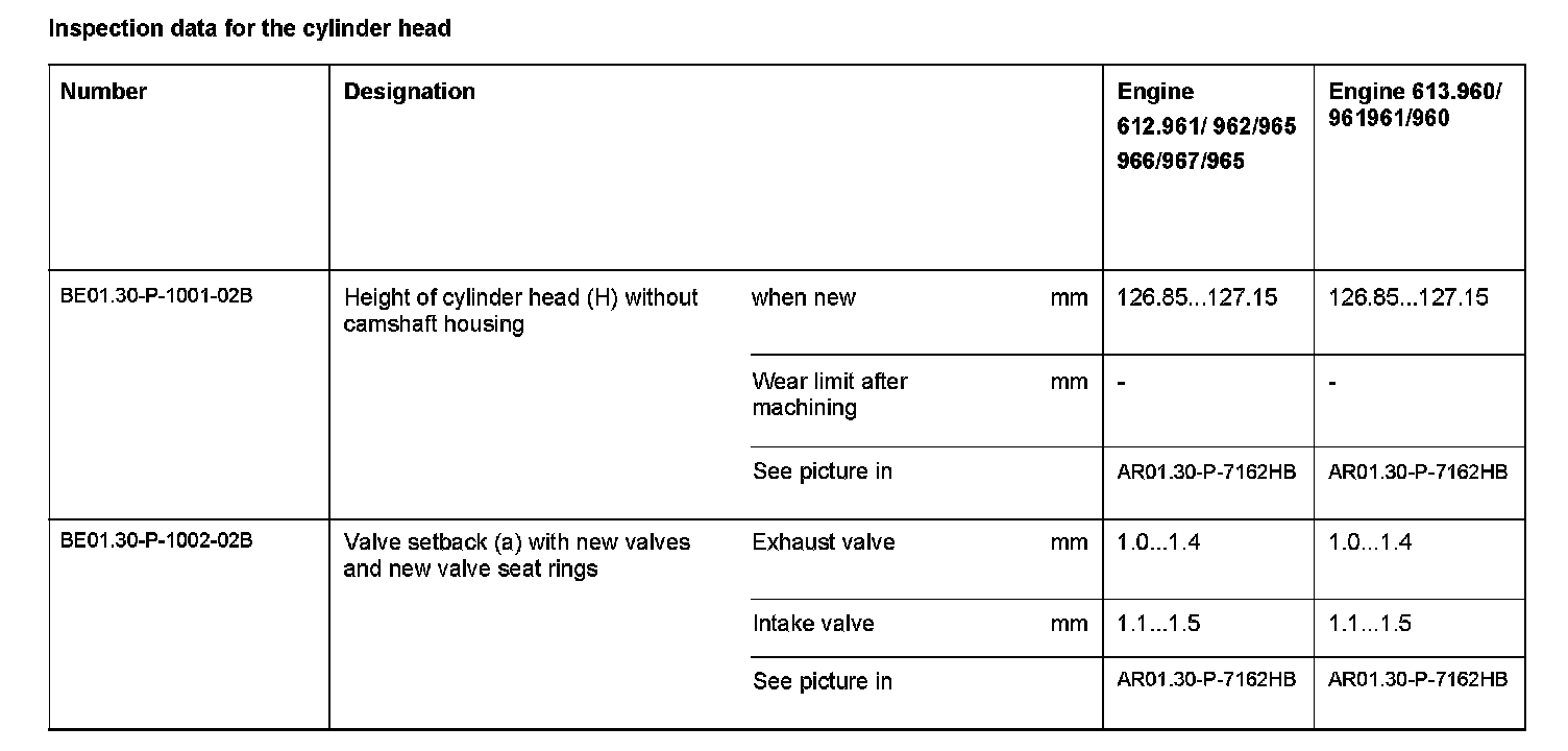 BE01.30-P-1000-02B Inspection data for cylinder headInspection data for the cylinder head: