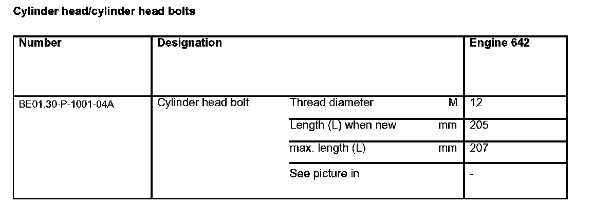 The cylinder head bolts must be installed new if the max. length (L) of the cylinder head bolt is exceeded.