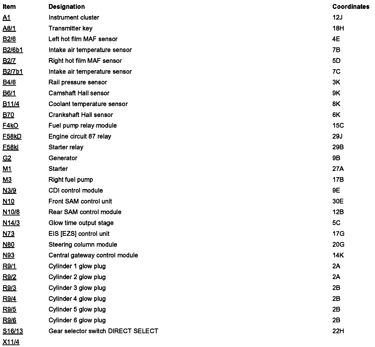 Component Locations: Component Location photographs can be found via their component names at the vehicle level. Component Locations