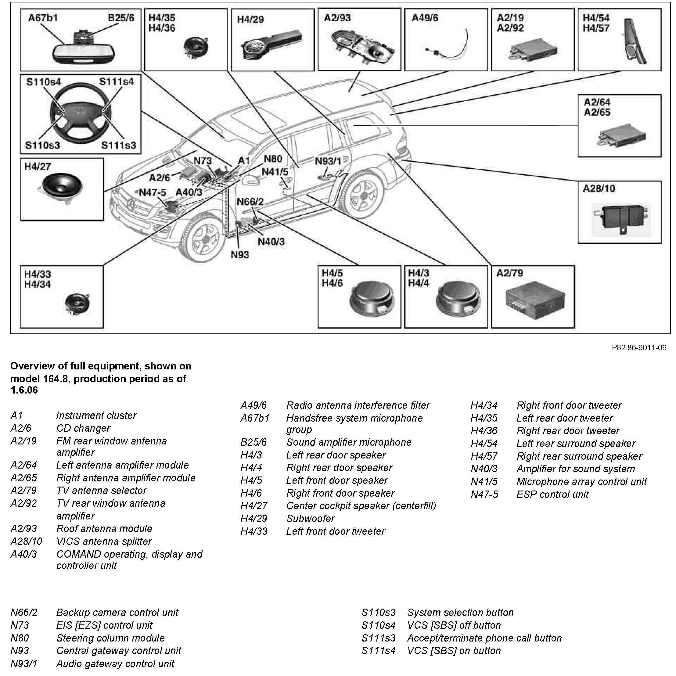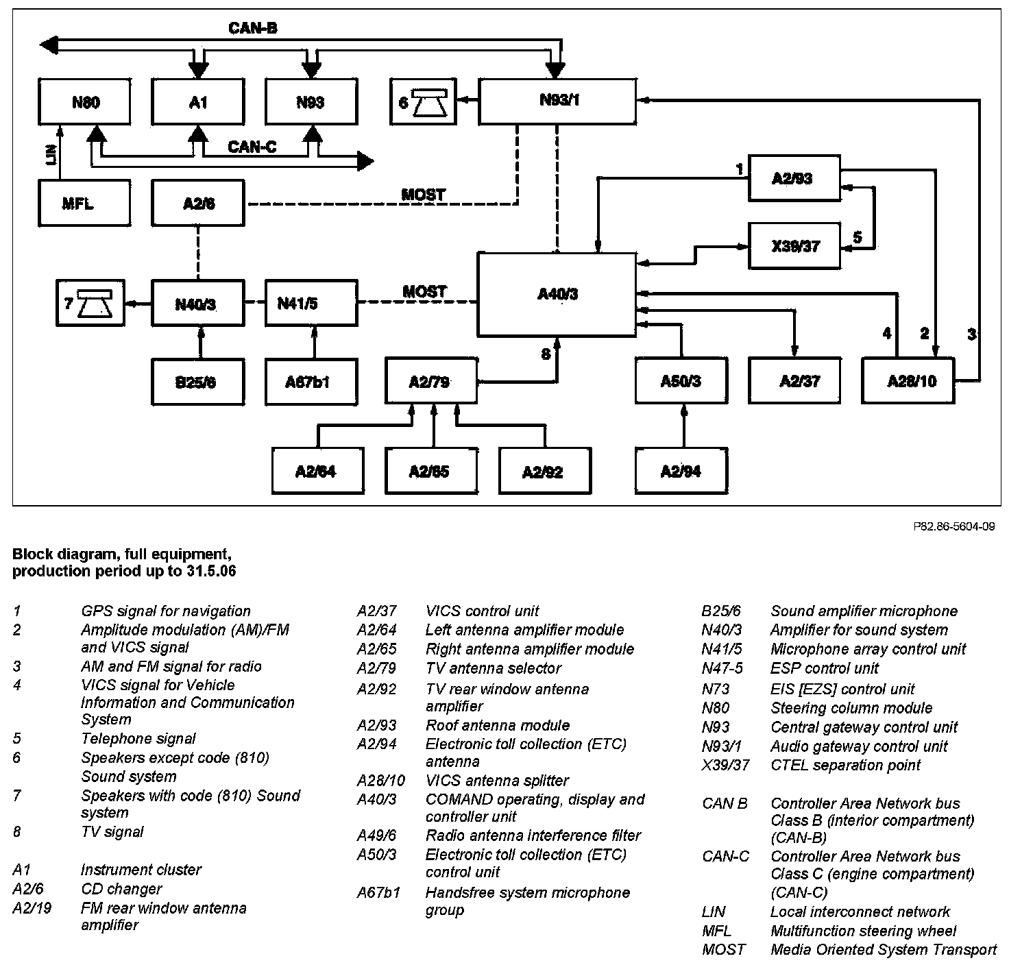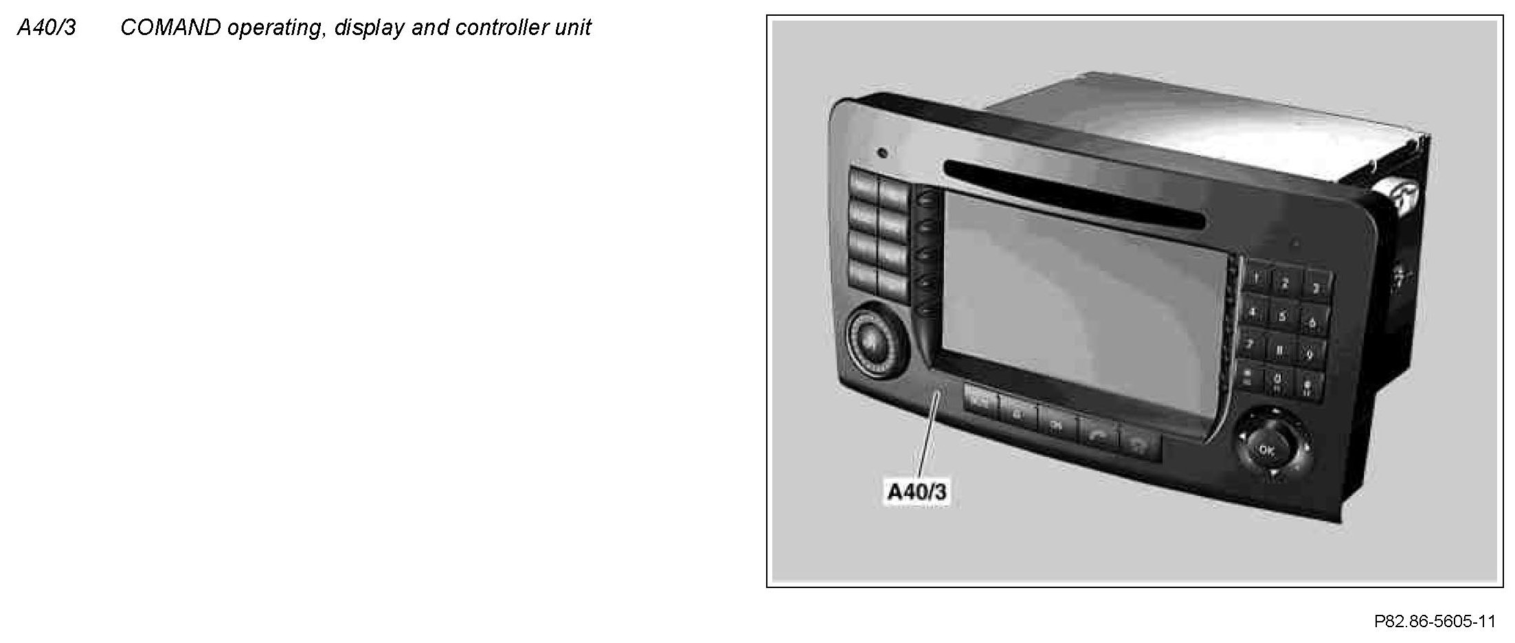 The COMAND operating, display and controller unit is responsible for managing the audio sources in the MOST. Operation in vehicles with code (810) Sound system is effected using the COMAND operating, display and controller unit. The functionality is processed in the amplifier for sound system.