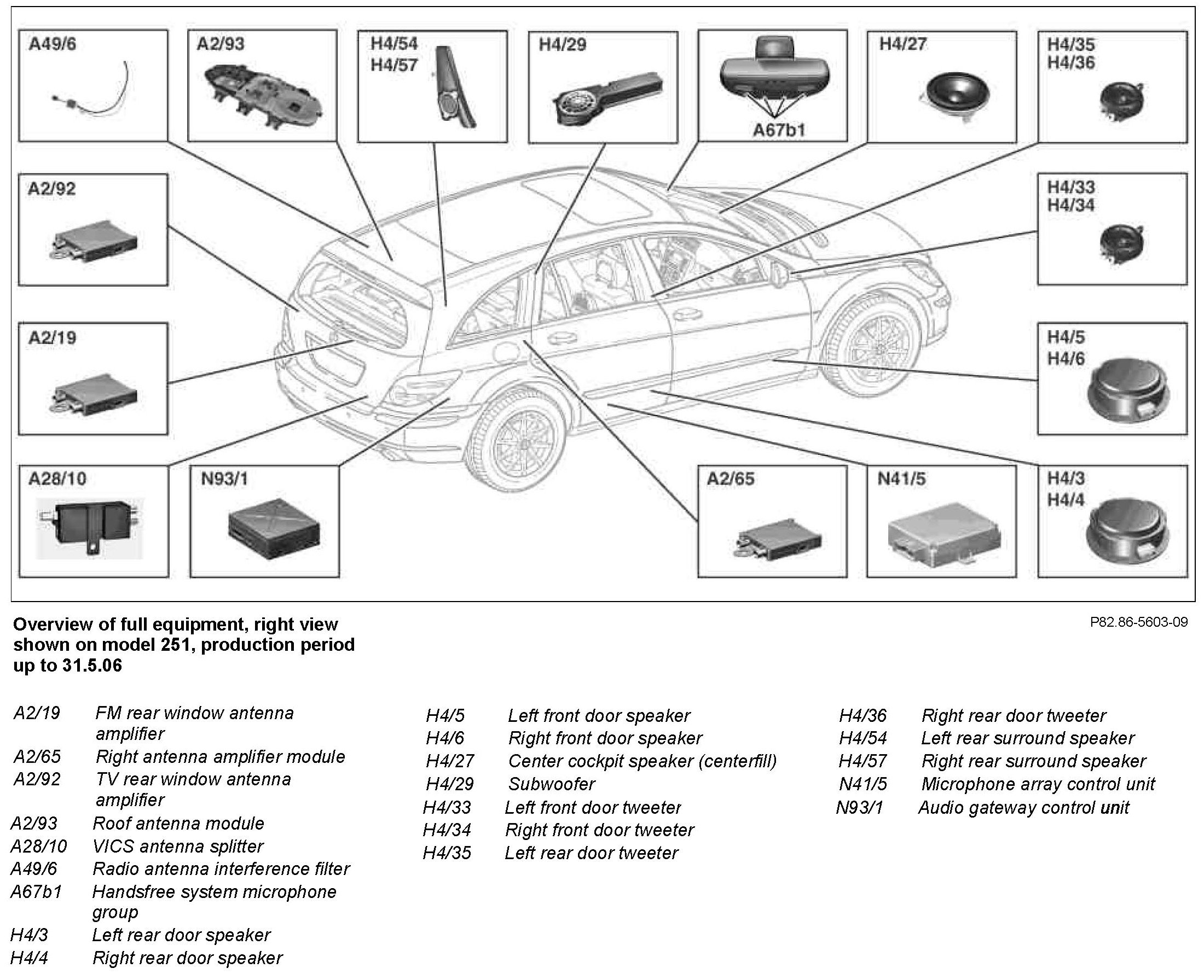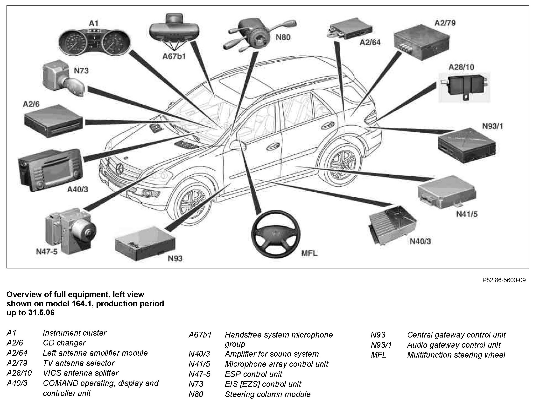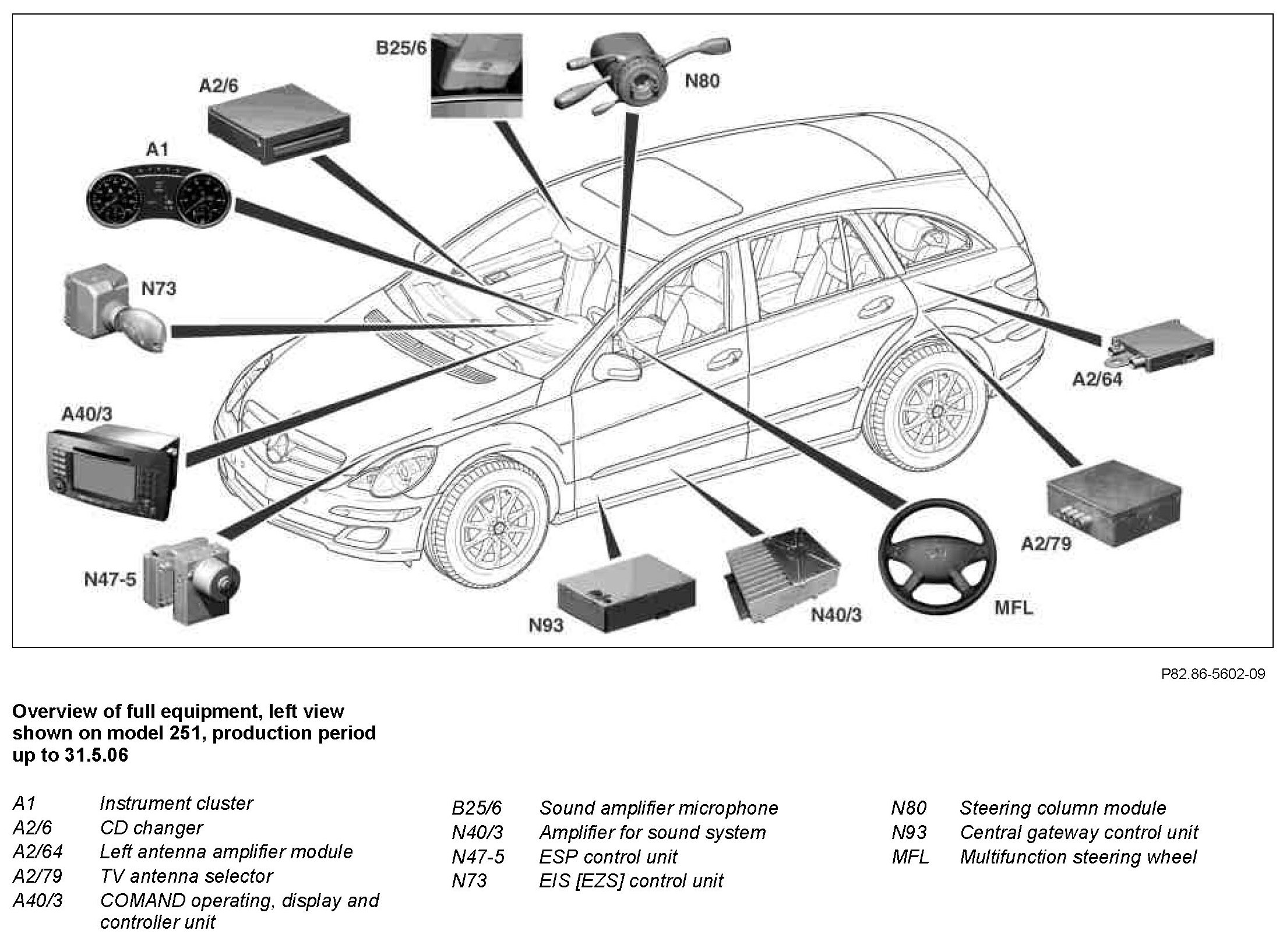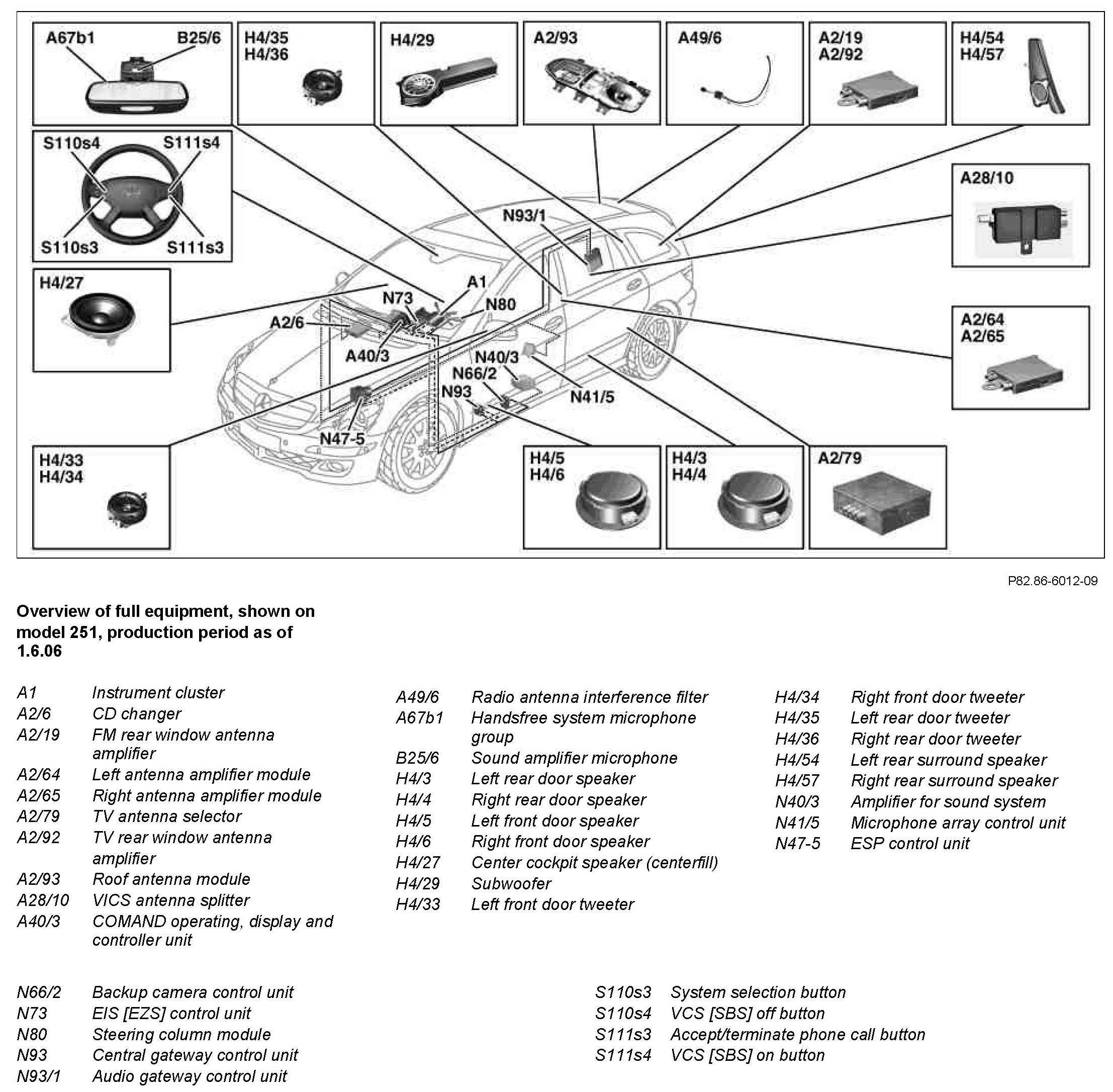 The COMAND operating, display and controller unit is responsible for managing the audio sources in the MOST. Operation in vehicles with code (810) Sound system is effected using the COMAND operating, display and controller unit. The functionality is processed in the amplifier for sound system.