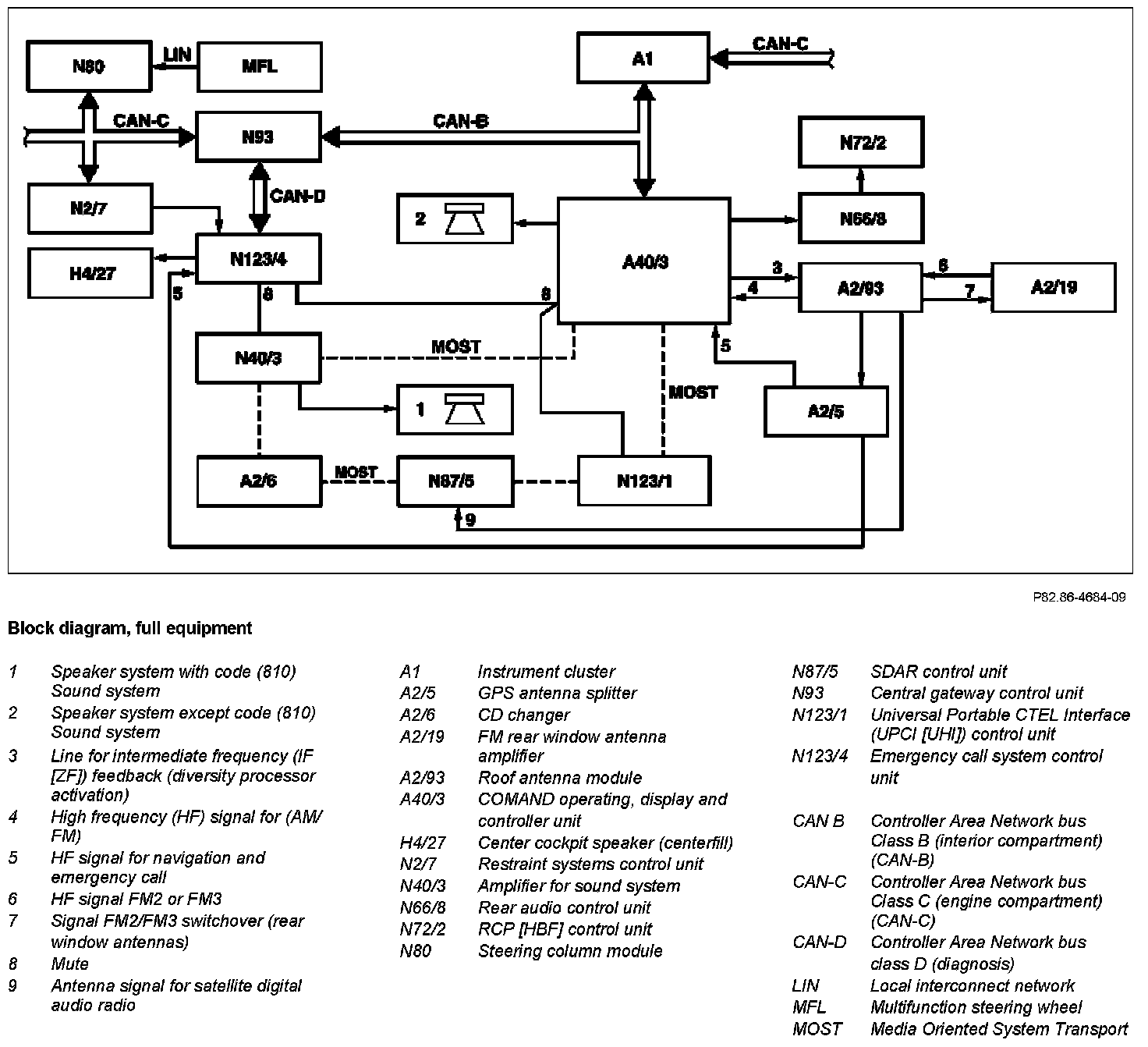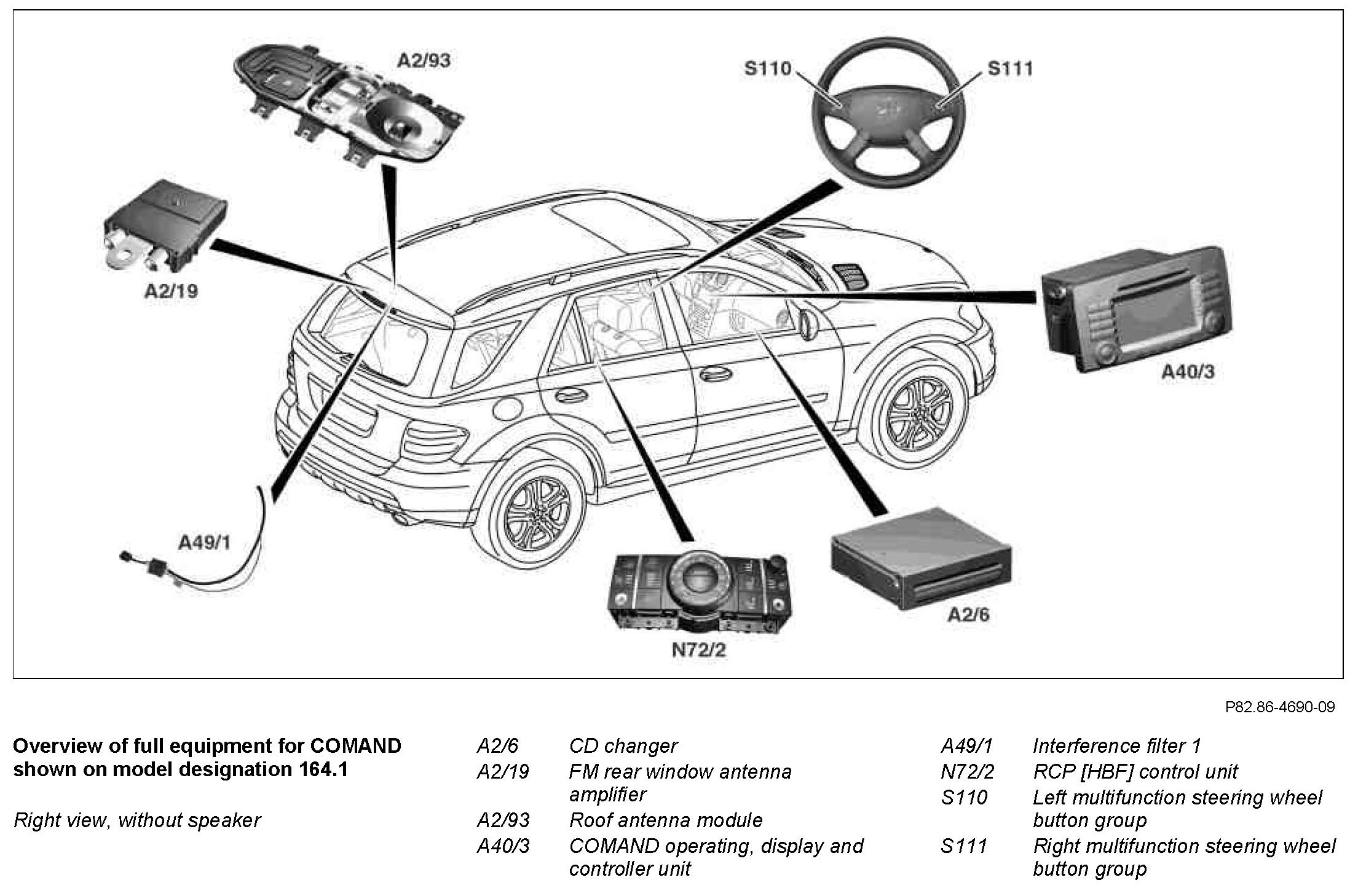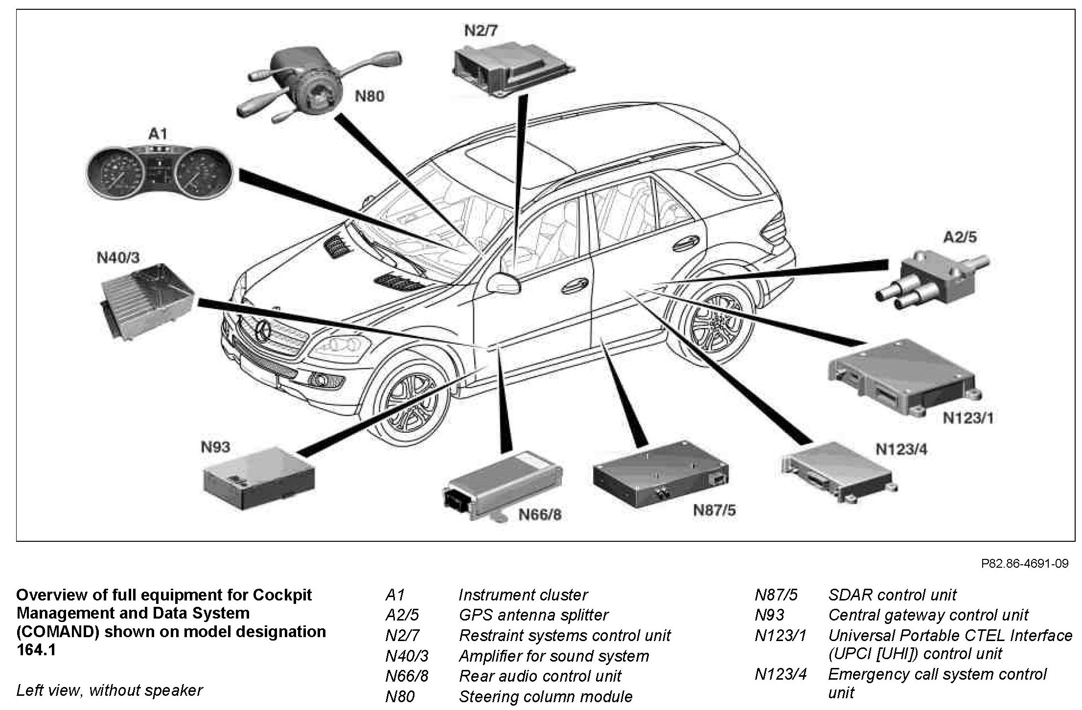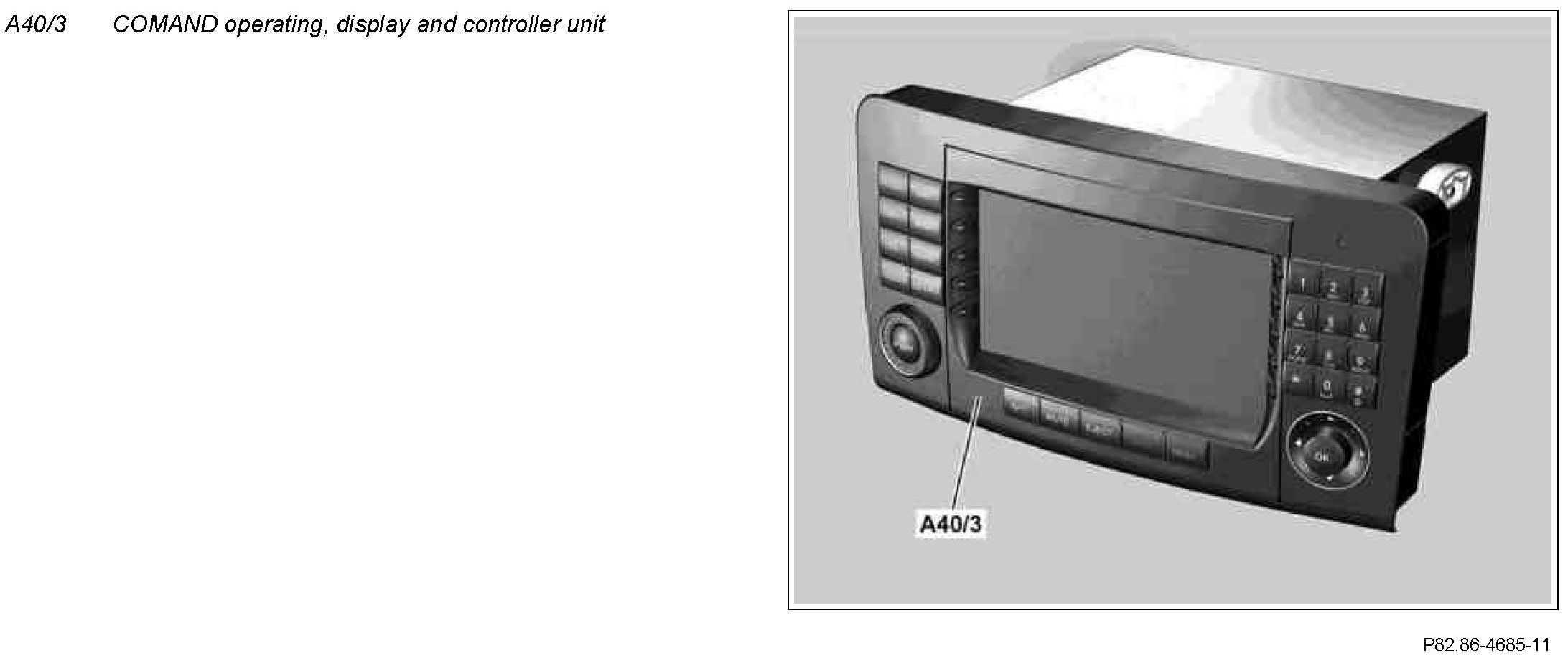All MOST components (navigation processor and audio gateway) known from other versions and required for navigation are present in the COMAND, operating, display and controller unit.