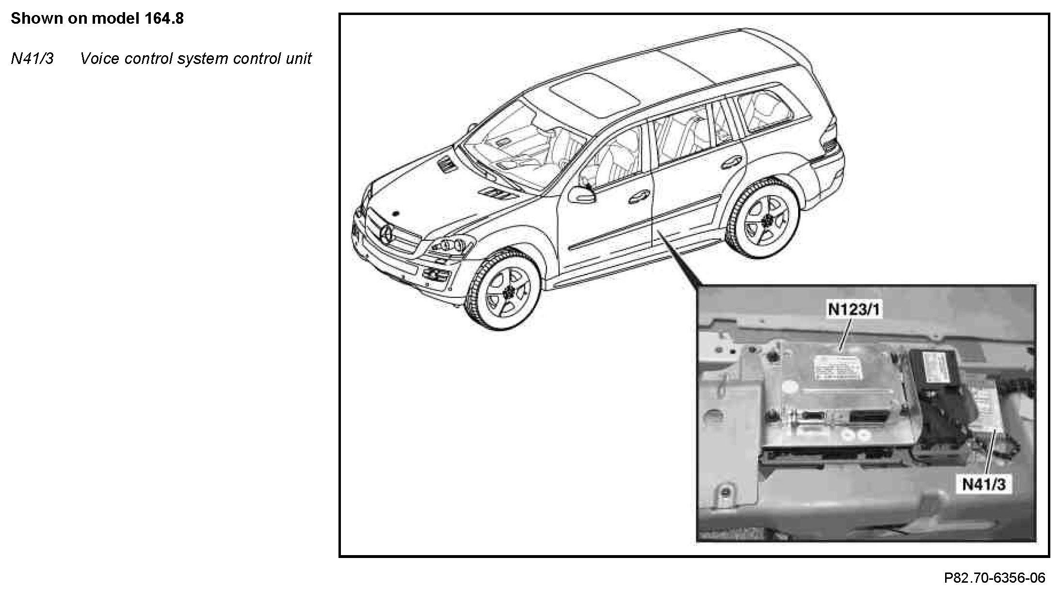 The voice control system (VCS [SBS]) control unit is installed under the left rear seat.