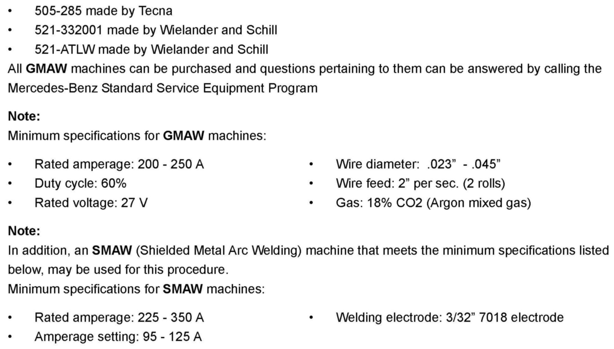Recommended GMAW (Gas Metal Arc Welding) machines shown above.