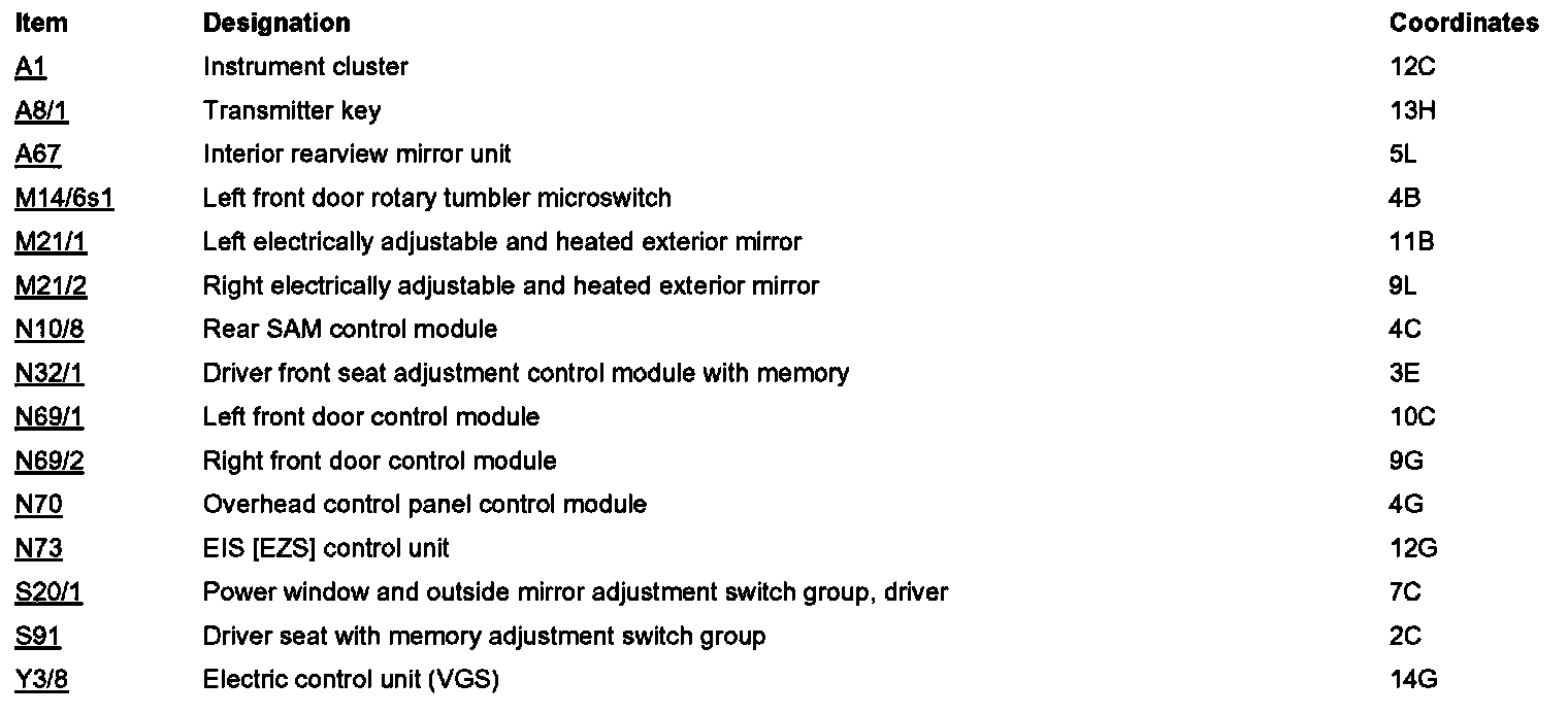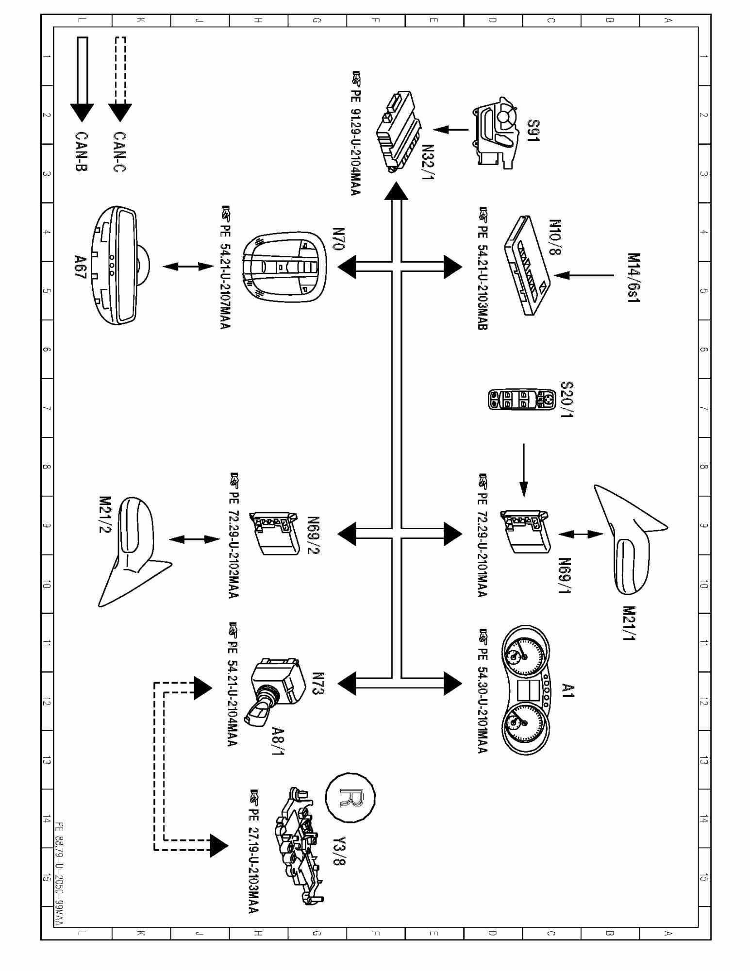 PE88.79-U-2050MAA Function Schematic For Mirror Adjustment Electrical System