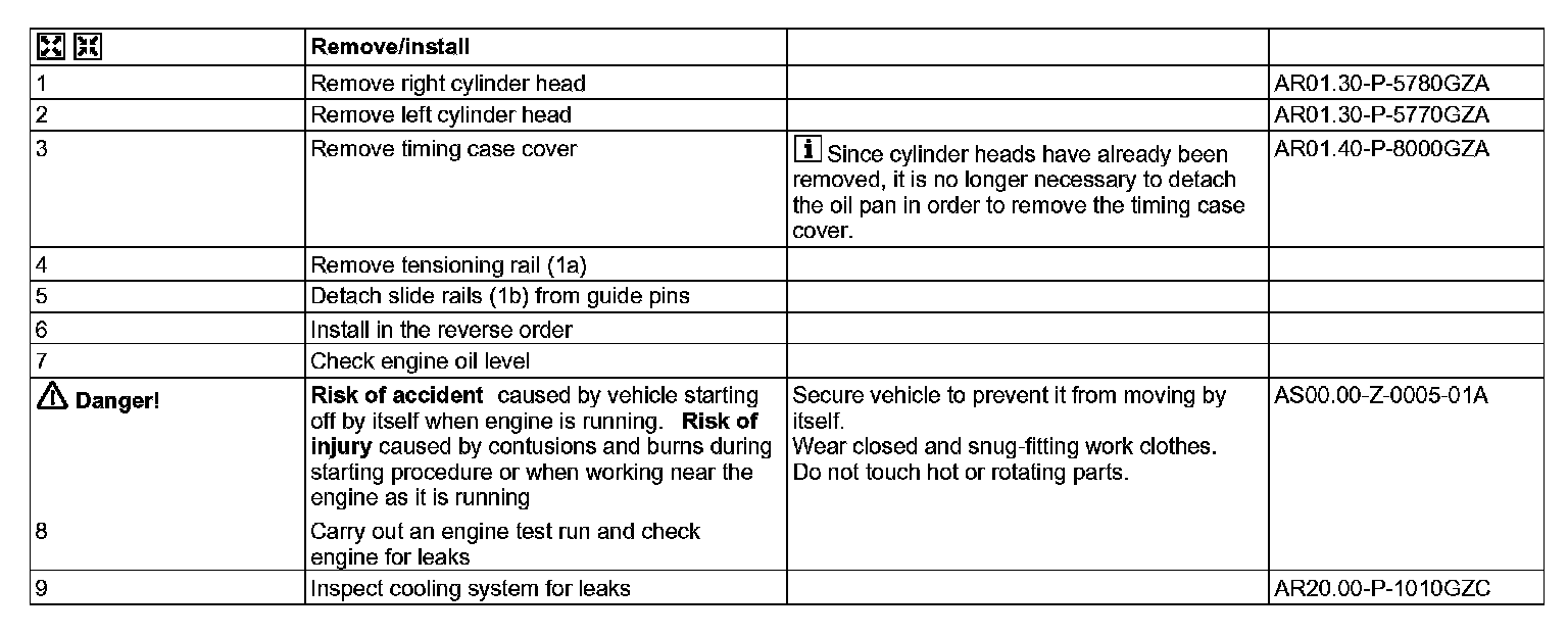 AR05.10-P-8484GZZ Remove/Install Slide Rail In Timing Case Cover