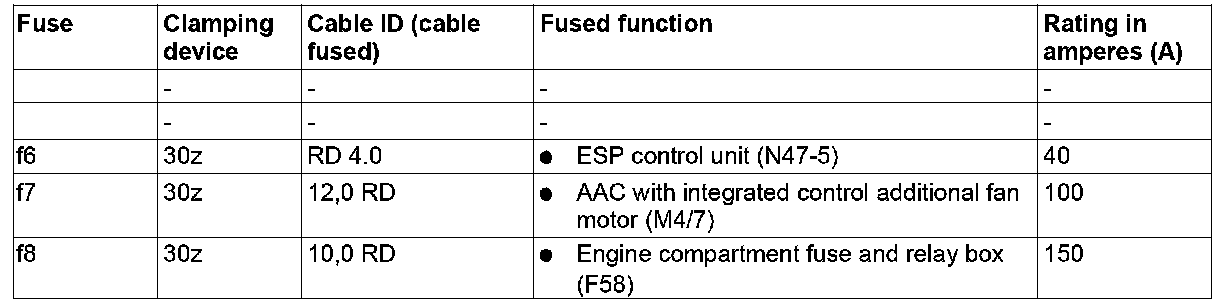 GF54.15-P-1256-07GZ Fuse Assignment Of Front Prefuse Box