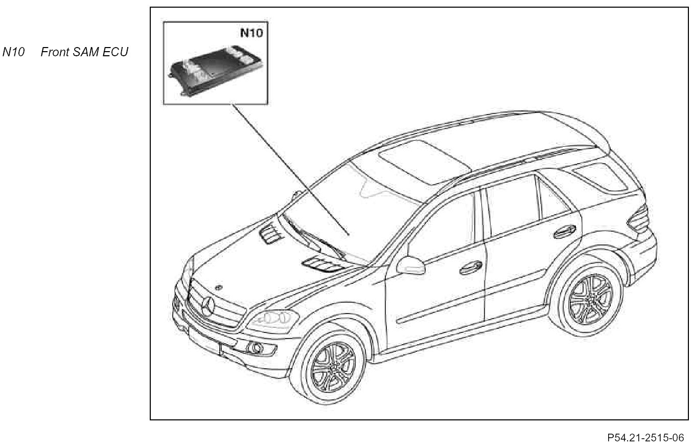 For data exchange purposes the front SAM control unit is connected to the Controller Area Network bus class B (interior) (CAN-B).