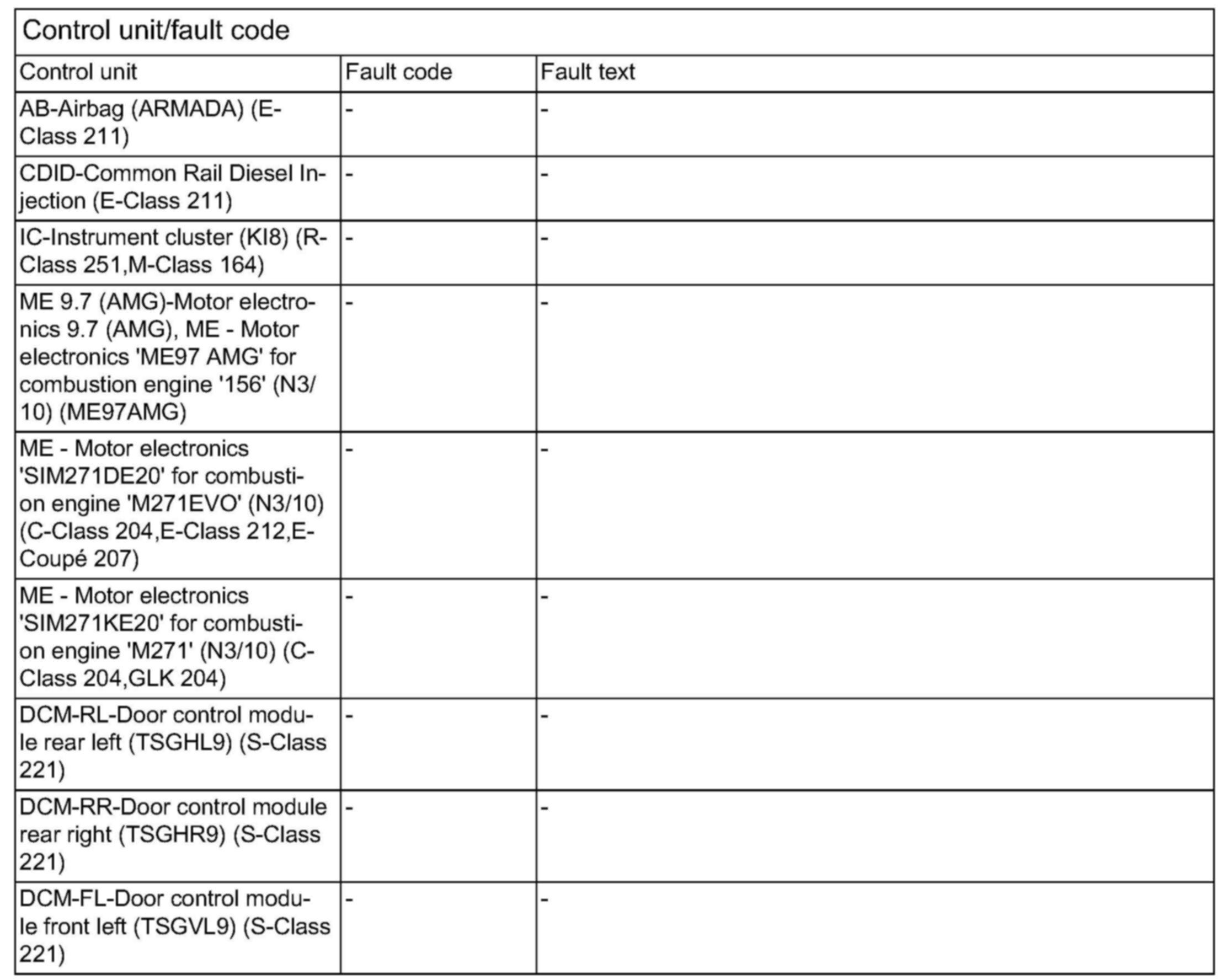 Control unit/fault code