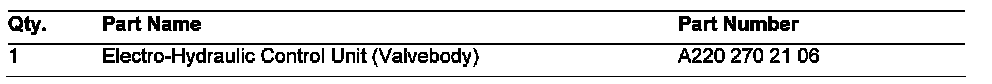In order to install the latest SW versions the vehicle must be equipped with valve body A220 270 13 06 or A220 270 21 06. If the transmission is equipped with part number A220 270 14 06, please replace the valve body first and then proceed with the reprogramming. For reference please refer to WIS document AR27.19-P-0200W.