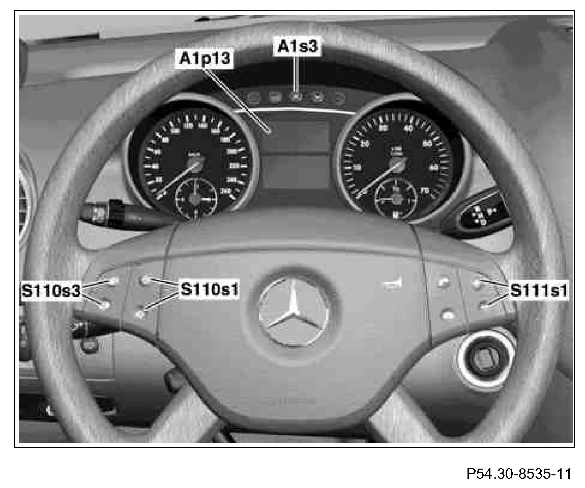 3 Press system selection button (S110s3) repeatedly until the kilometer reading or temperature is displayed in the multifunction display (A1p13).