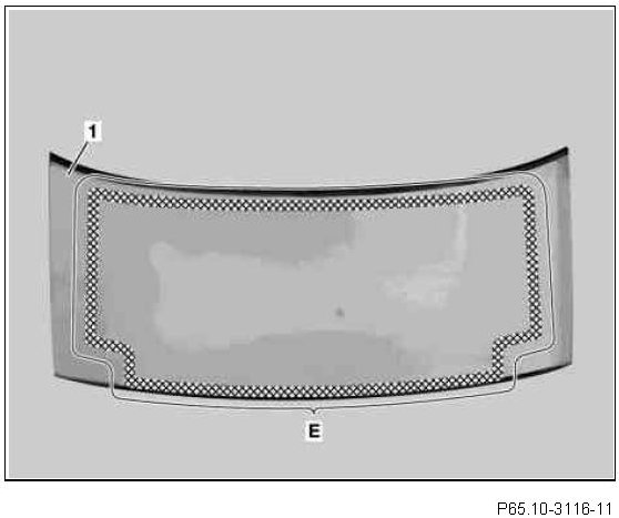 4. Apply glass primer to bonding surface (E) of antenna module cover (1) using application rod provided and allow to dry completely (flash-off time at least 10 min).